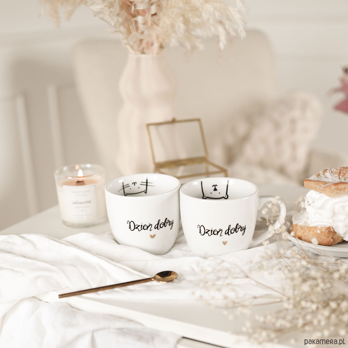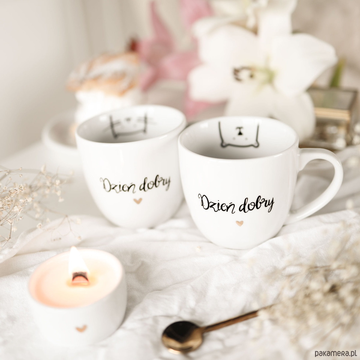 Zestaw kubków 300 ml - Dzień dobry Kotku Dzień dobry Misiu ZŁOTE SERCE