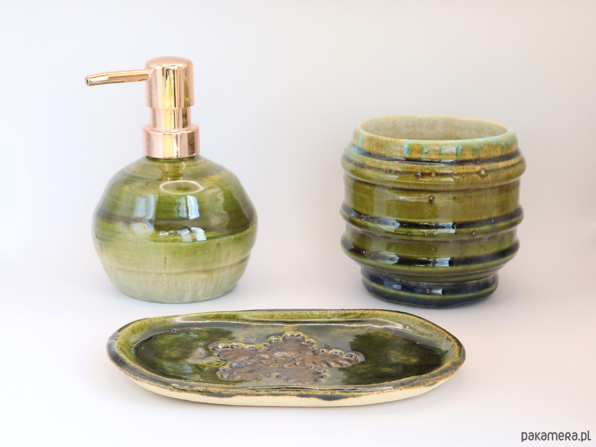 Zestaw łazienkowy akcesoria Dozownik na mydło Mydelniczka, zielona, łazienka