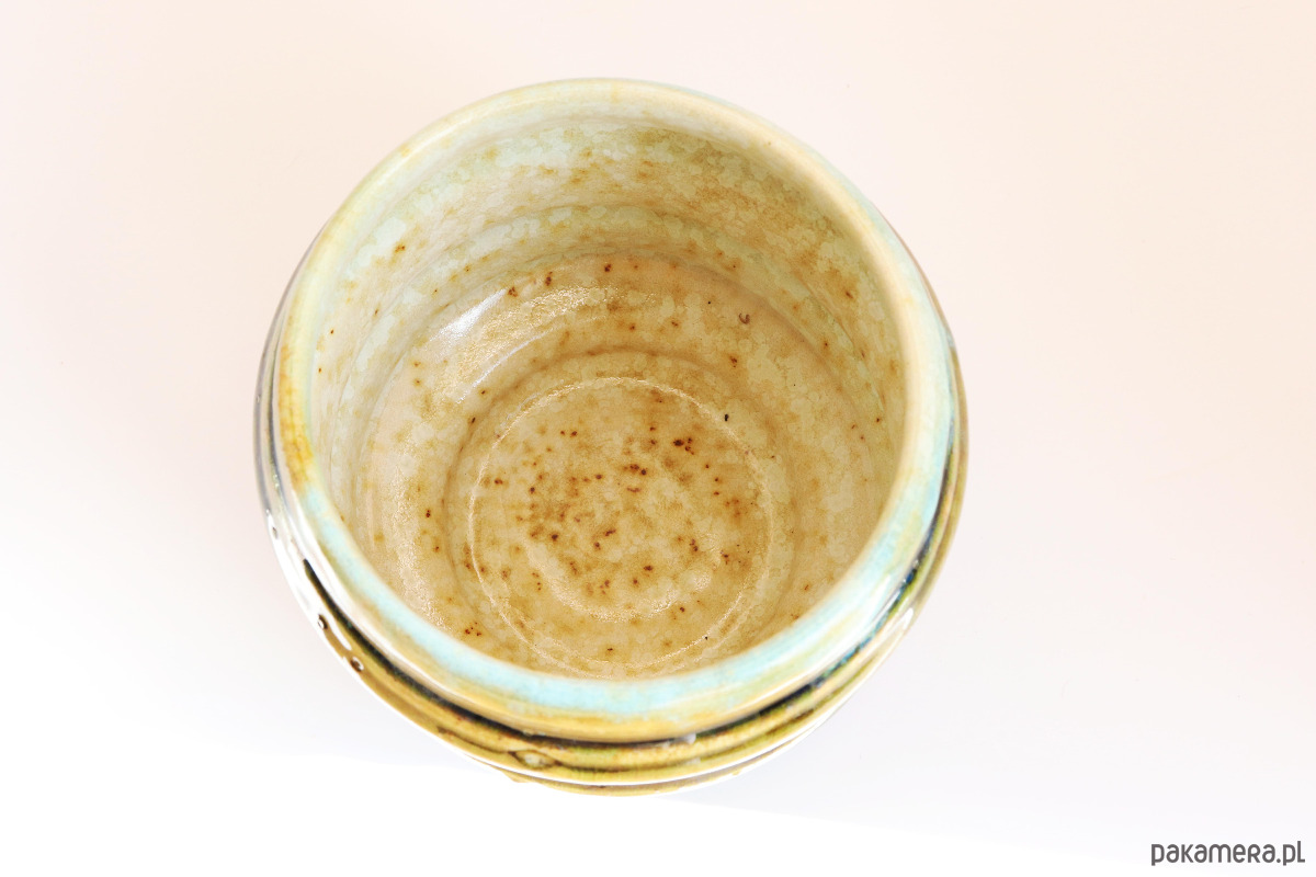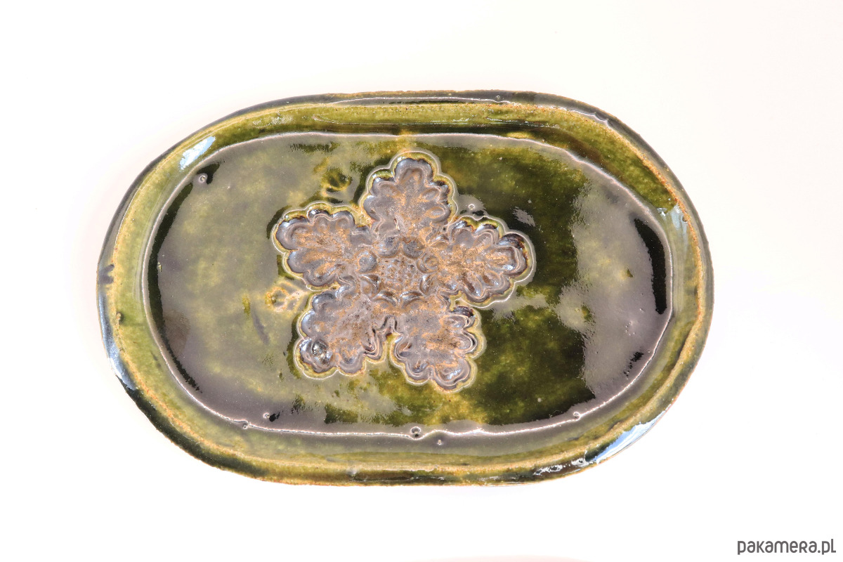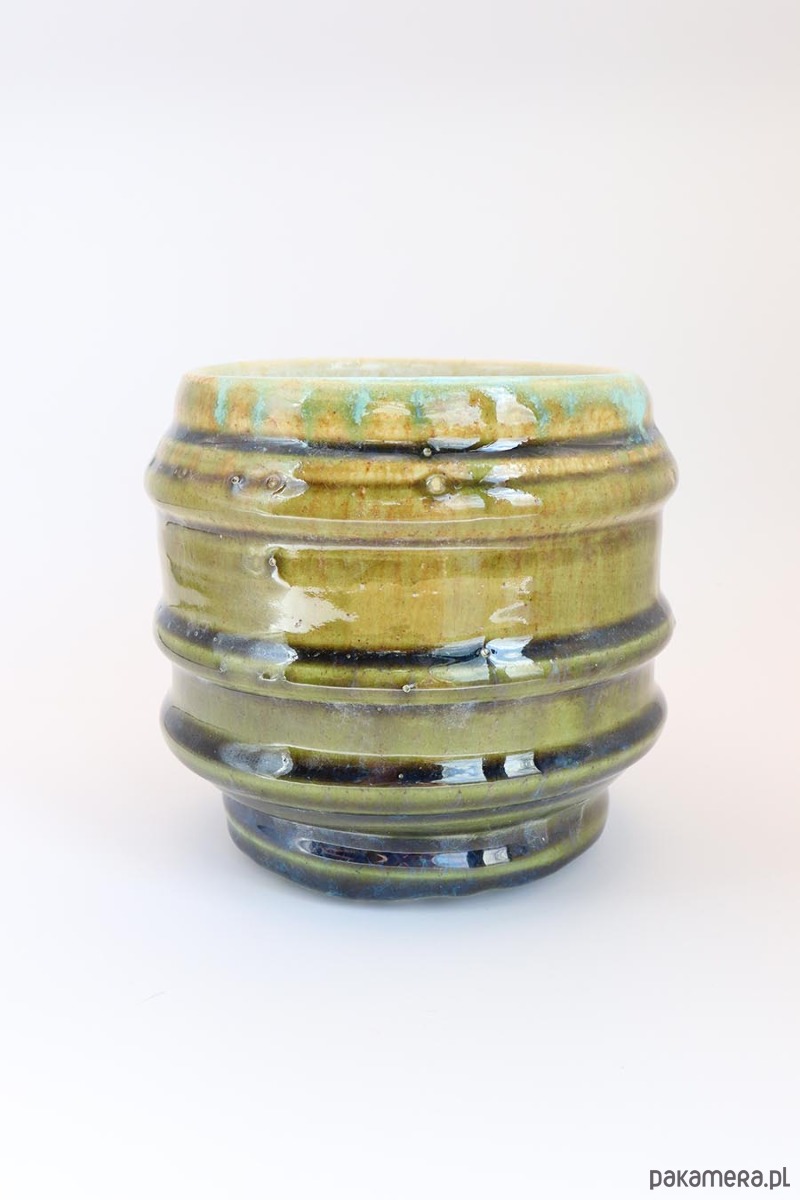 Każdy element został ręcznie uformowany i szkliwiony, co czyni go jedynym w swoim rodzaju. Głęboka zielono-miedziana glazura z delikatnym połyskiem pięknie odbija światło, nadając wnętrzu ciepła i charakteru.