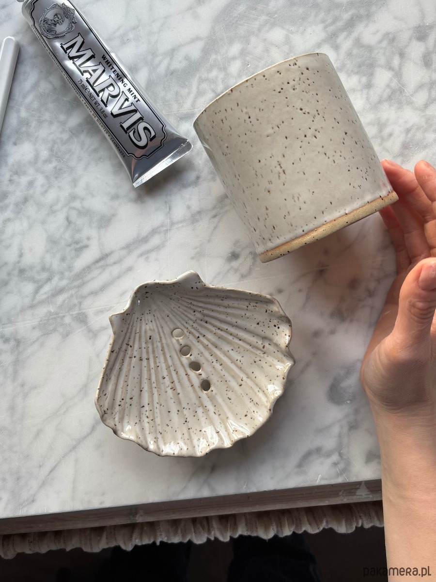Zestaw Łazienkowy z Mydelniczką Muszlą Freckled White