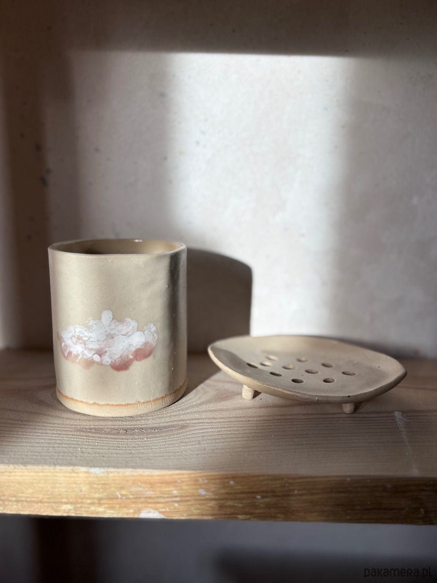Ręcznie wykonany ceramiczny zestaw łazienkowy w stylu modern farmhouse. Nieregularne kształty, minimalizm i organiczność materiału sprawią, że zestaw będzie pięknie zdobił i podkreślał wyjątkowość każdego rodzaju wnętrza.