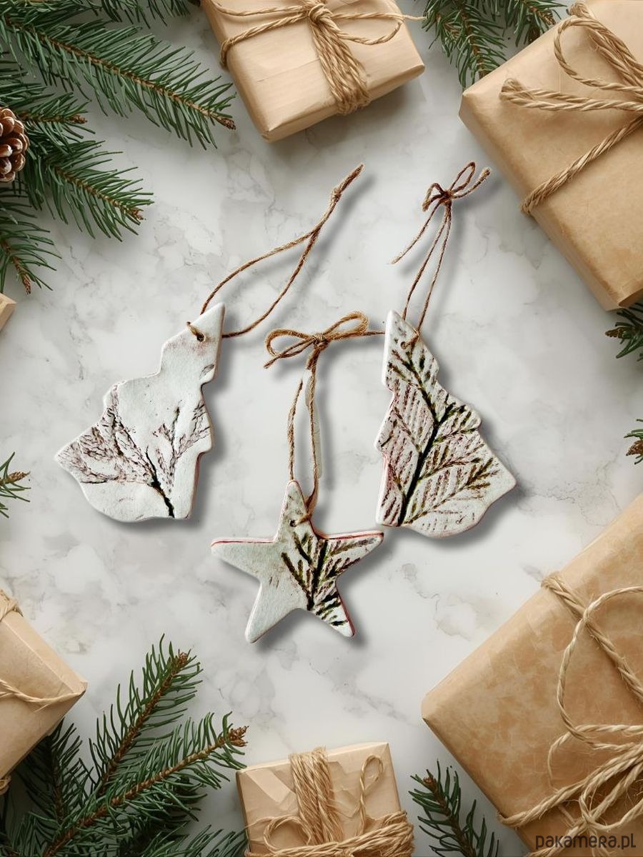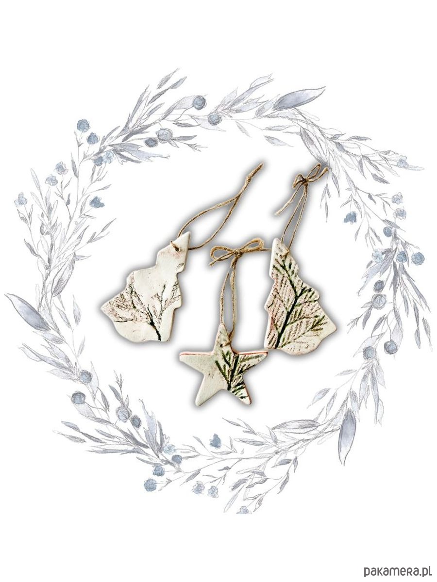 Zestaw Leśna trójca - 3 zawieszki ceramiczne na choinkę