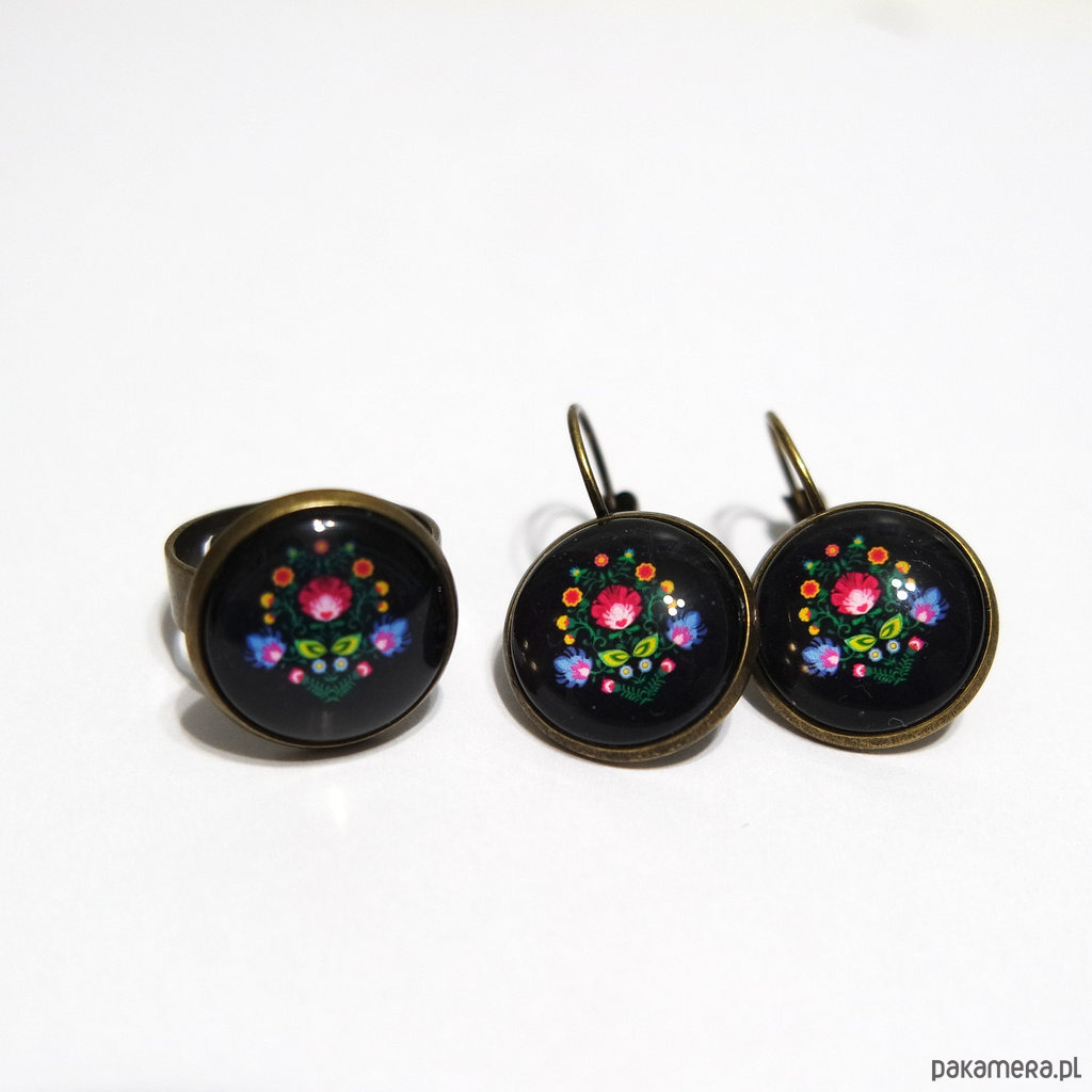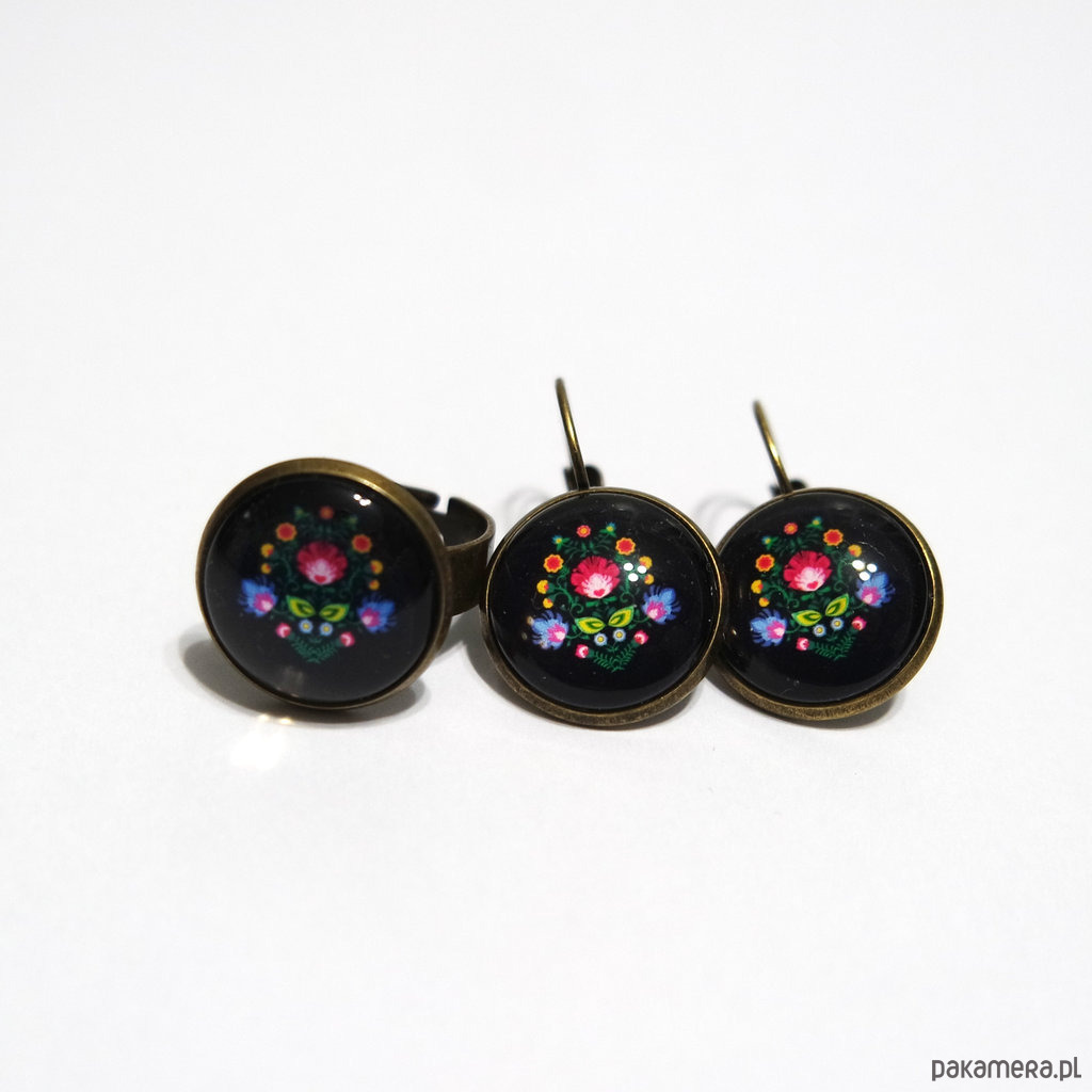 Zestaw ludowy czarny - kolczyki i pierścionek