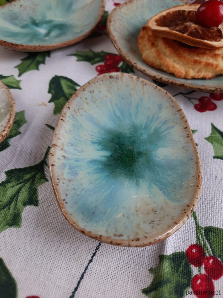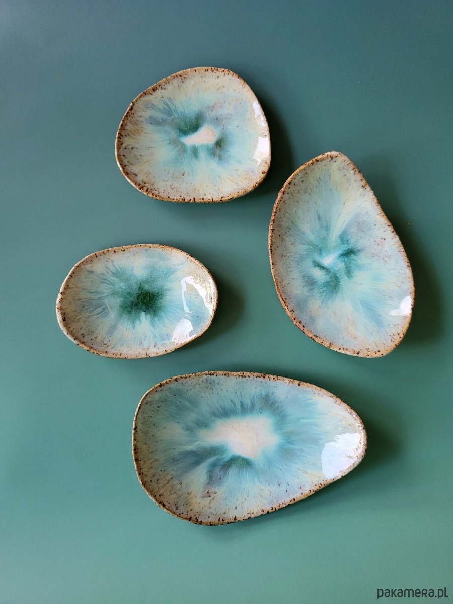 Zestaw małych turkusowych paterek ceramicznych. Śliczne. Polskie rękodzieło