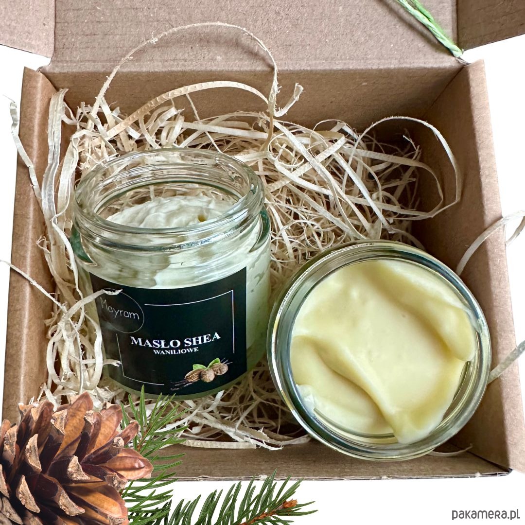 * Masło do ciała Shea waniliowe 60 ml - Masło Shea przede wszystkim nawilża skórę, utrzymując odpowiedni poziom wody, odżywia przesuszony naskórek oraz poprawia wygląd i kondycję skóry oraz redukuje płytkie zmarszczki i poprawia napięcie skóry. Witaminy młodości: A i E zawarte w maśle shea jak i w oleju z pestek winogron spowalniają procesy starzenia oraz chronią przed czynnikami zewnętrznymi. I oczywiście olej jojoba, który w przypadku skóry suchej pobudza wydzielanie się sebum. Całość zwieńczona oryginalnym zapachem słodkiej wanilii przełamanej cytrusową bergamotką.