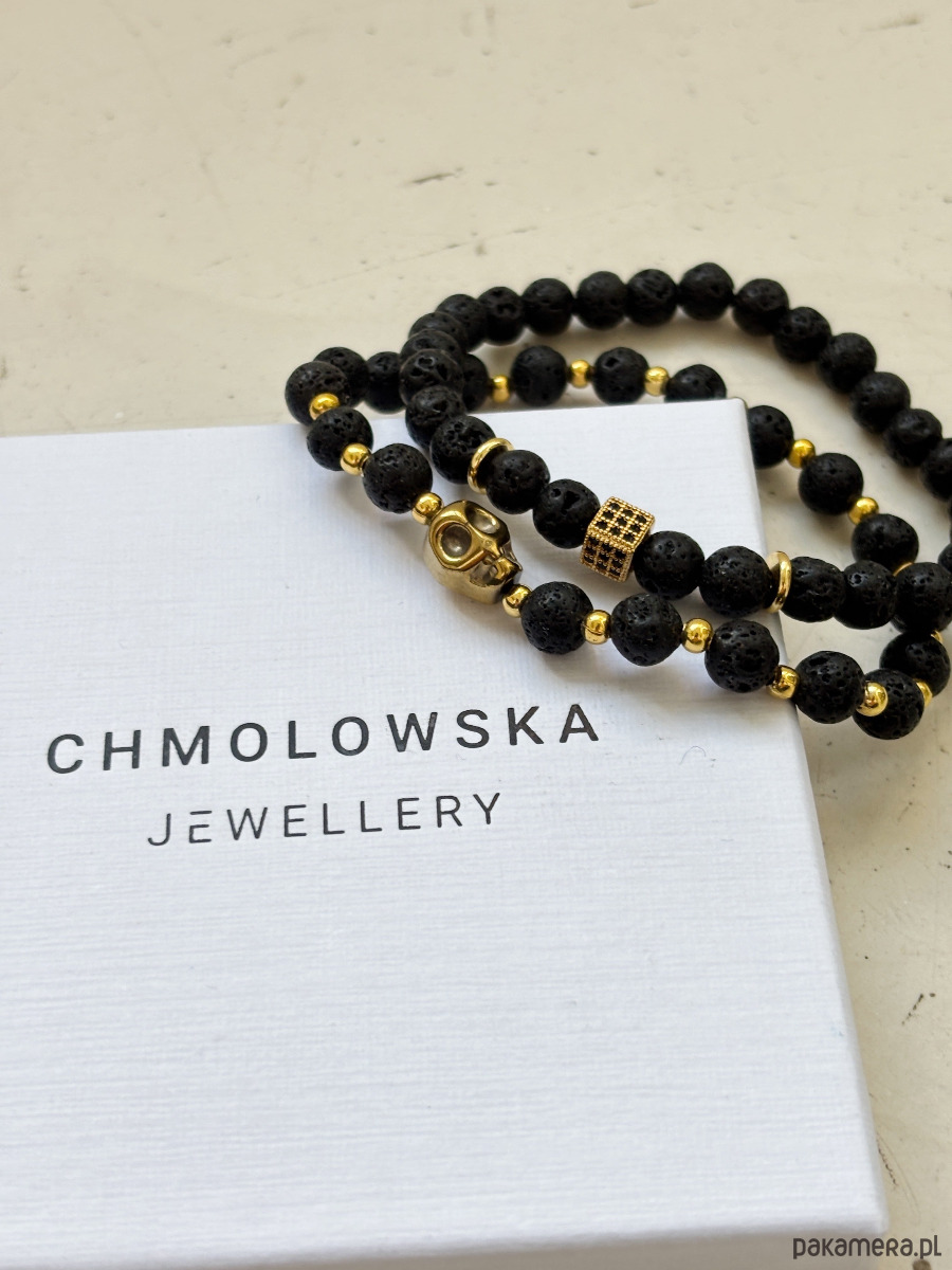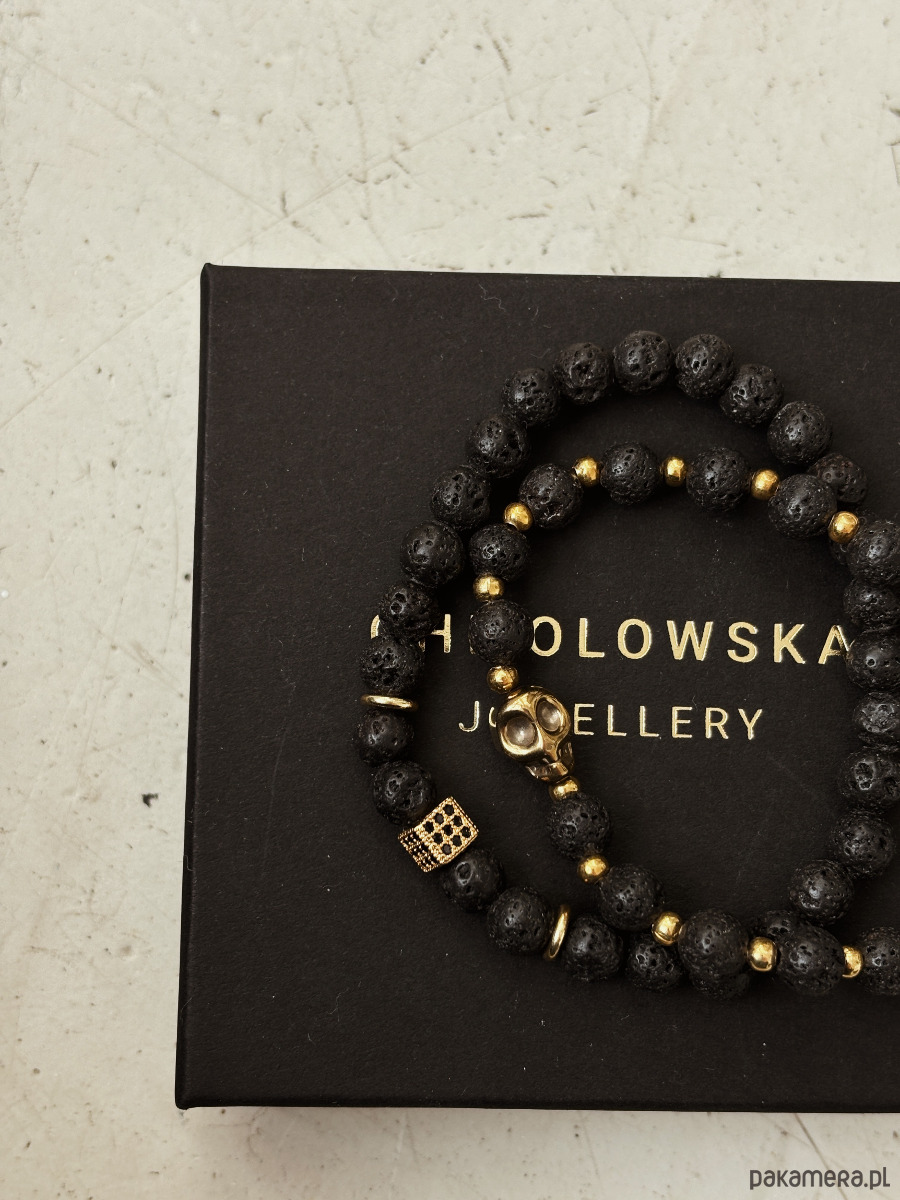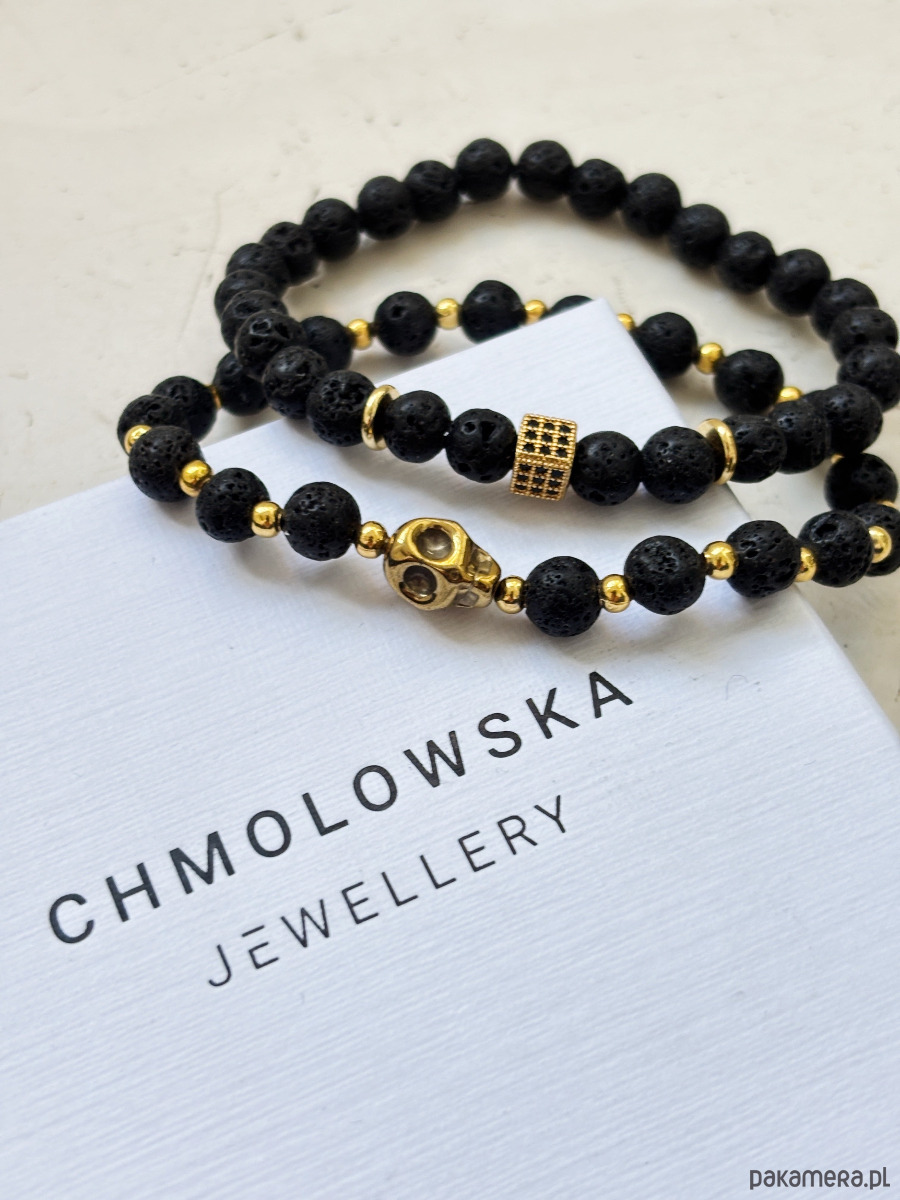 Bransoletki wykonane są na gumce jubilerskiej z użyciem Lawy Wulkanicznej i Hematytu.
