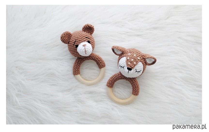 Zestaw składa się z dwóch kolorystycznie dopasowanych grzechotek: misia i sarenki.