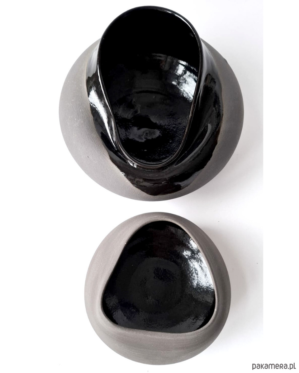 Matowo-grafitowa zewnętrzna część mis jest nieszkliwiona. Efekt matu podbija czarne błyszczące szkliwo położone we wnętrzu naczyń. Użyte materiały są przeznaczone do kontaktu z żywnością. Doskonały na prezent świąteczny lub urodzinowy.