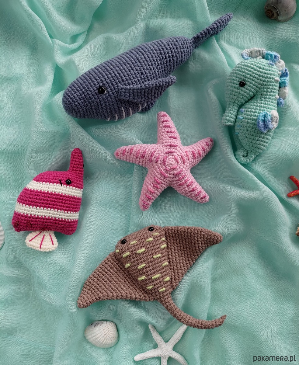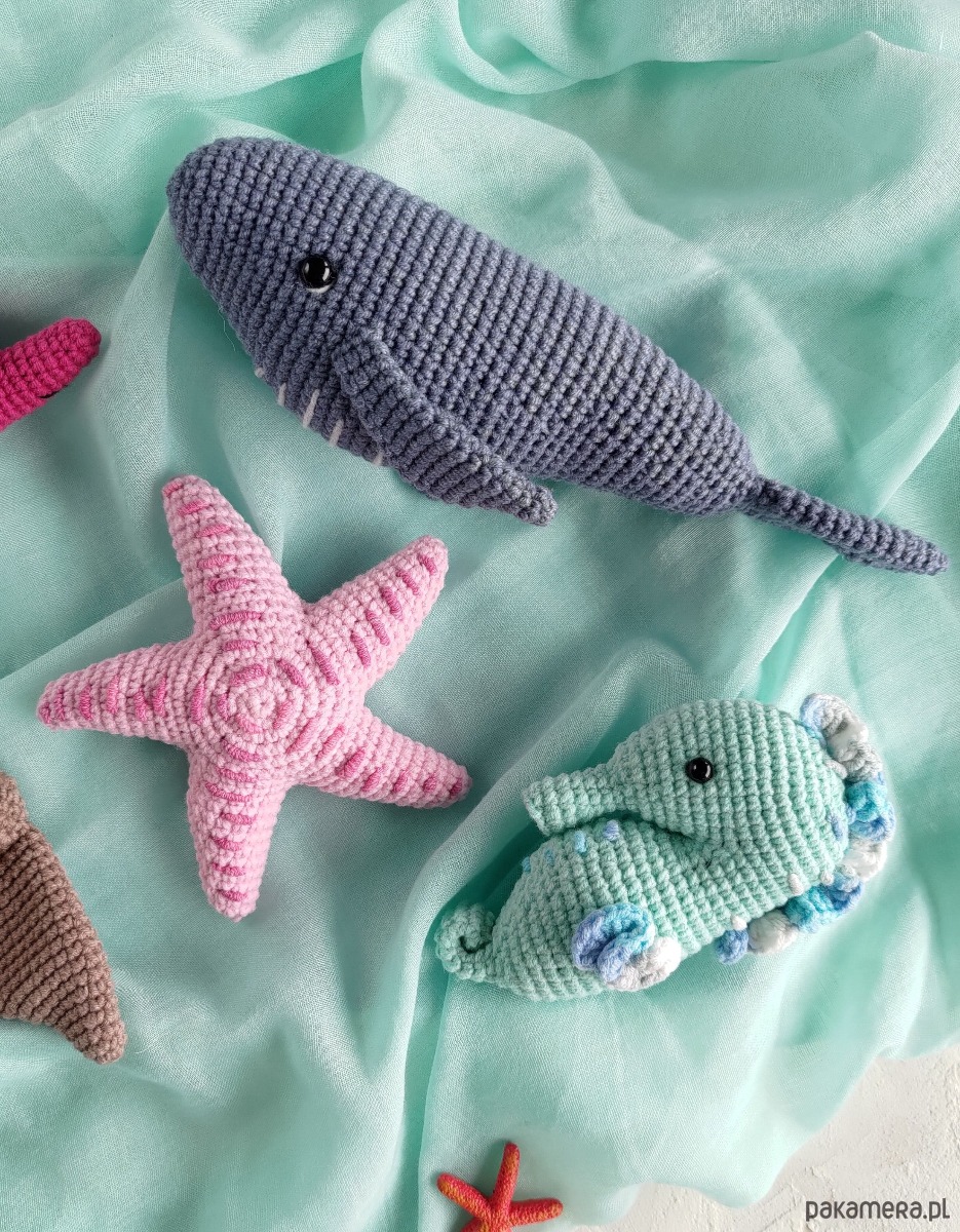 Morskie zwierzęta nie są zbyt małe, co sprawia, że są bardziej zauważalne i mniej prawdopodobne, że zgubią się w dziecięcym pokoju. Zwierzęta wykonane są z wysokiej jakości włóczki półbawełnianej (55% bawełny, 45% akrylu).