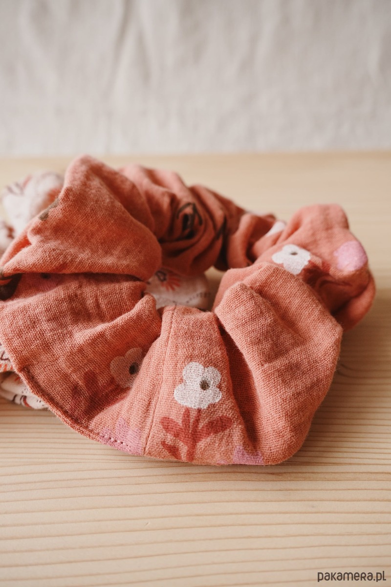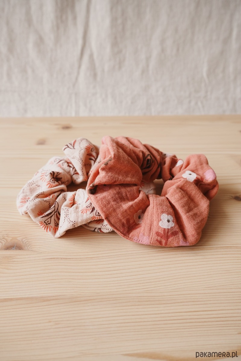 Bawełniane scrunchie • muślinowe frotki • gumki do włosów