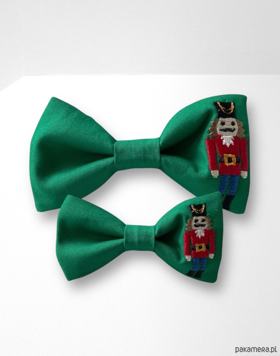 Wzór: muszki w kolorze ZIELONYM , haft: dziadek do orzechów
