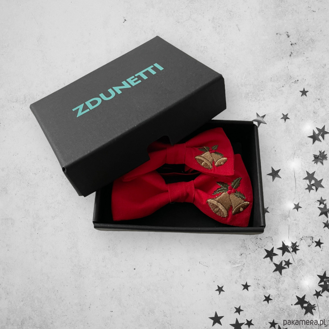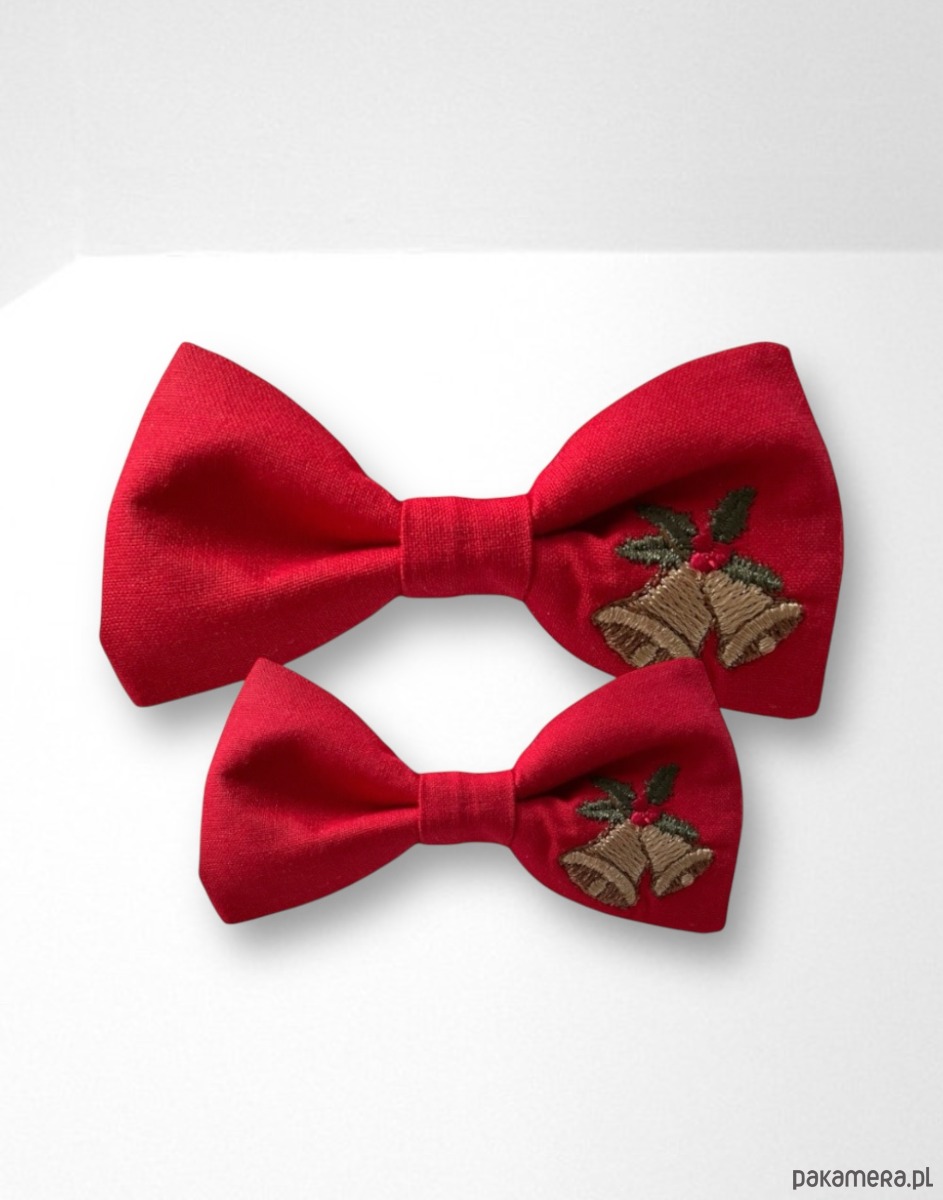 Zestaw muszek dla taty i syna świąteczne dzwonki czerwony