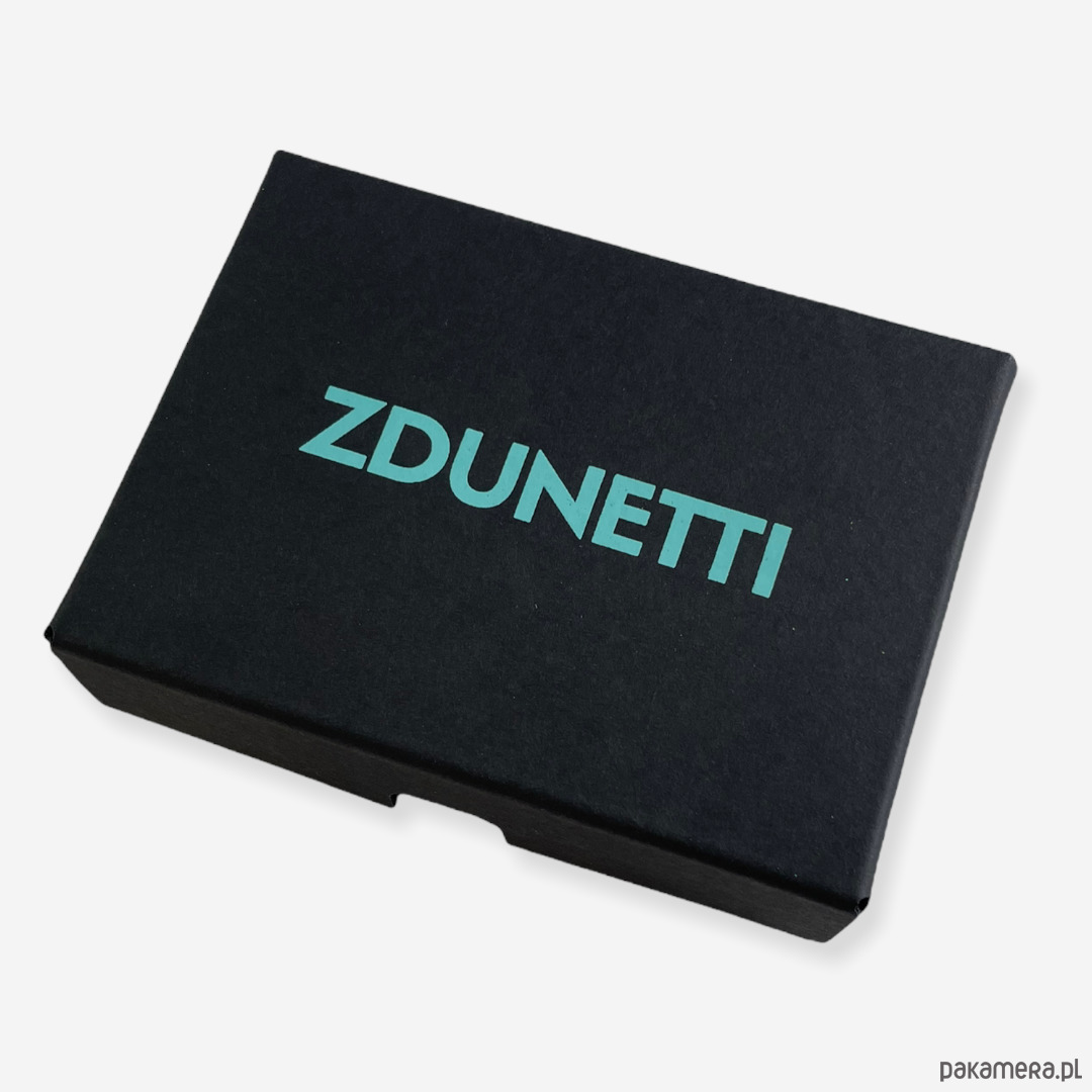 Zapakowane w czarne pudełko (z tektury litej) z logo ZDUNETTI.