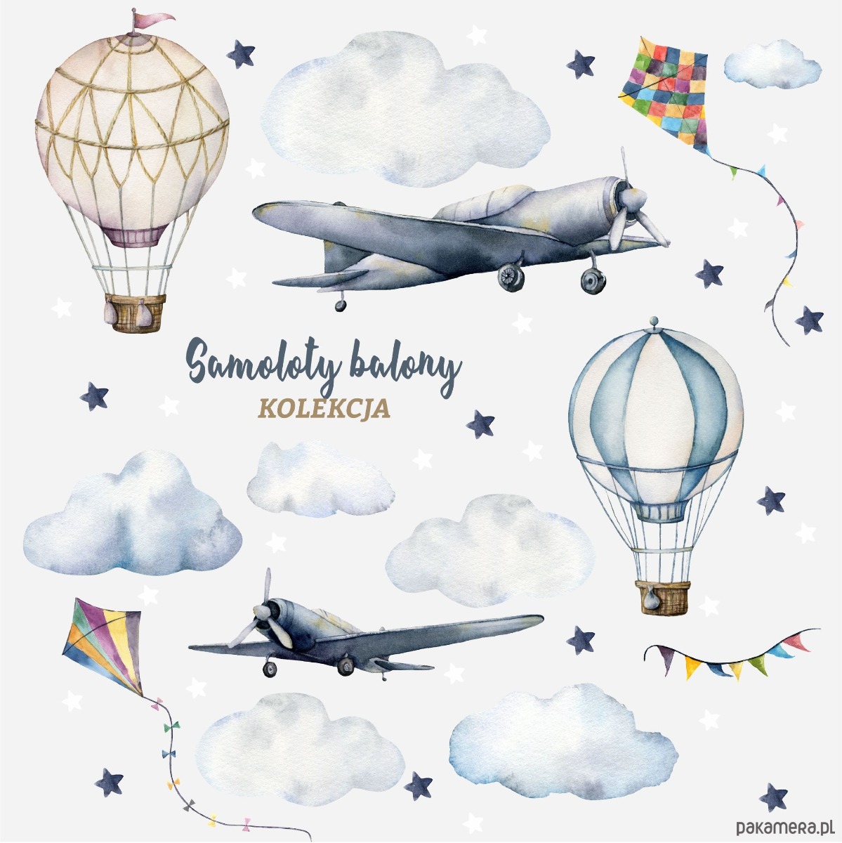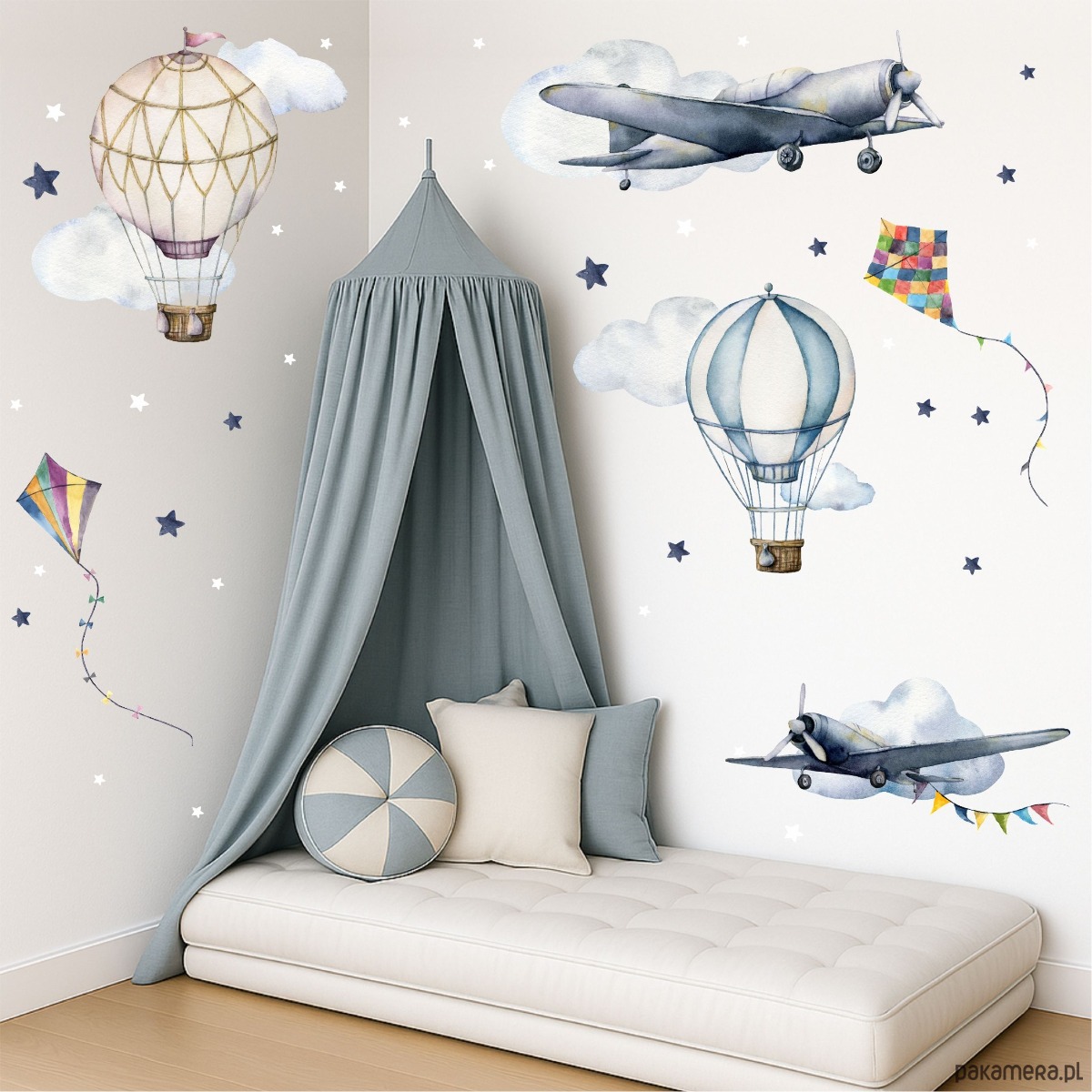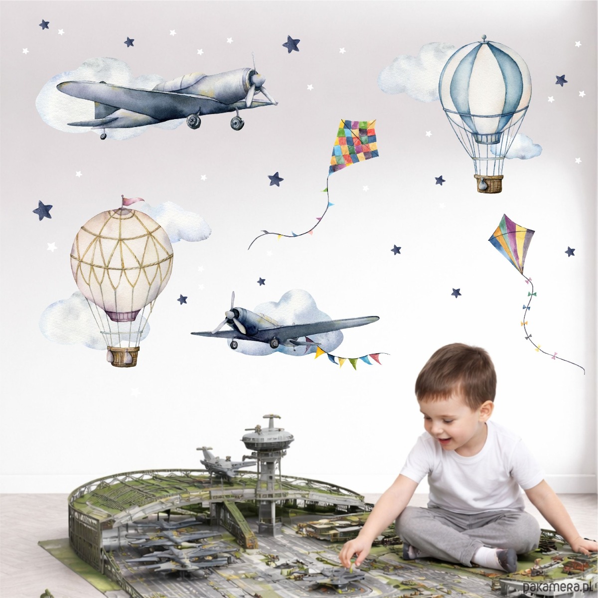 Zestaw naklejek ściennych z samolotami, balonami i latawcami