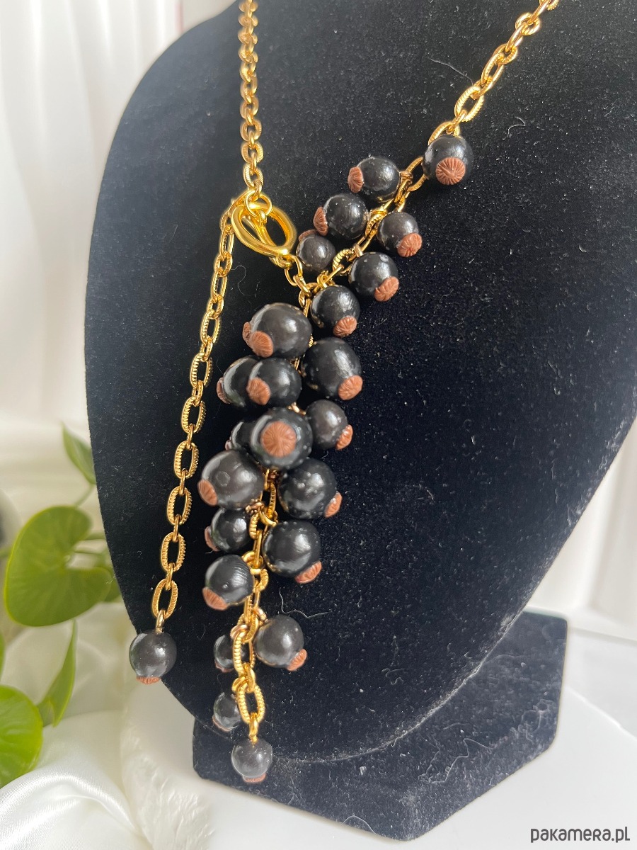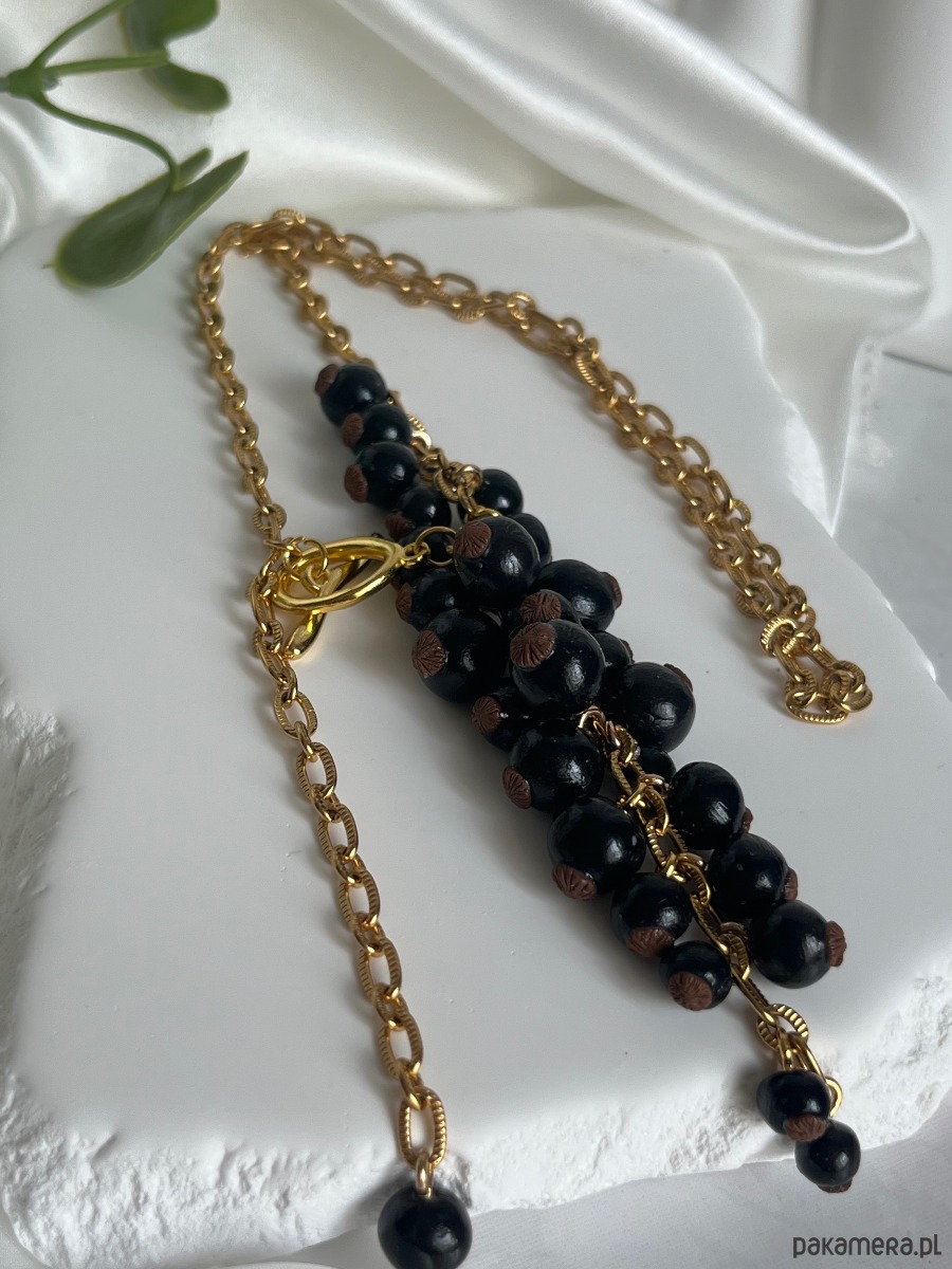Przedstawiamy wyjątkowy, ręcznie wykonany komplet biżuterii, który łączy w sobie realizm natury z luksusowym wykończeniem. Soczyste, czarne owoce porzeczki w połączeniu ze złotymi detalami tworzą niezwykle efektowną całość.