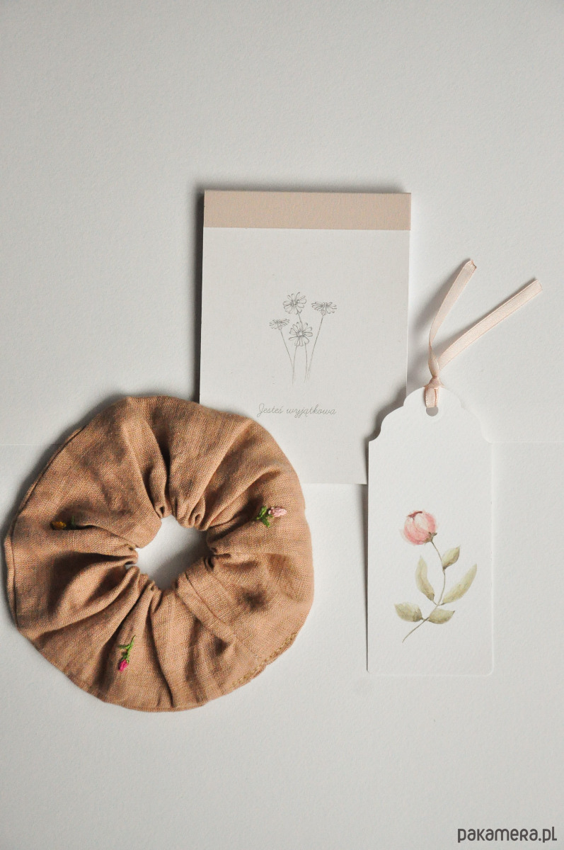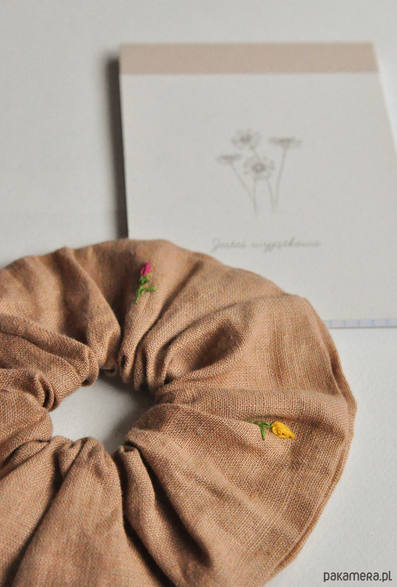 - dużej gumki lnianej ręcznie wyszywanej w kwiatki,