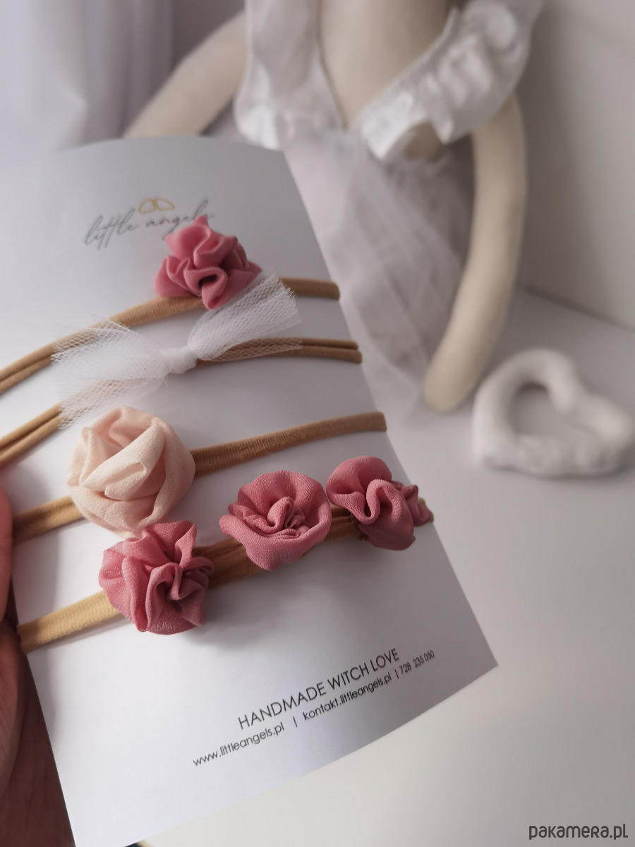 Zestaw 4 opasek bezusickowych dla małej dziewczynki. Idealne na prezent. Wyjątkowe. Ręcznie uszyte - 0 kleju.