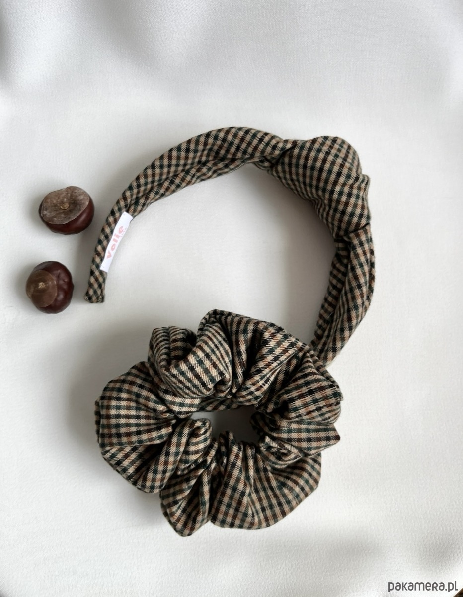 Zestaw opaska supełkowa & scrunchie Anna to duet idealny, klasyka w kratkę. To minimalistyczny, a zarazem efektowny dodatek do jesiennej czy też zimowej stylizacji.