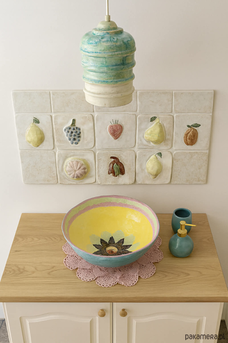 W tej serii znajdziesz płaskorzeźby ceramiczne z motywami owoców, ptaków i ryb – pełne ekspresji, struktury i śródziemnomorskiej duszy. Wszystkie kafelki formowane są ręcznie z gliny szamotowej i różnią się między sobą detalem, co czyni je małymi dziełami sztuki użytkowej.