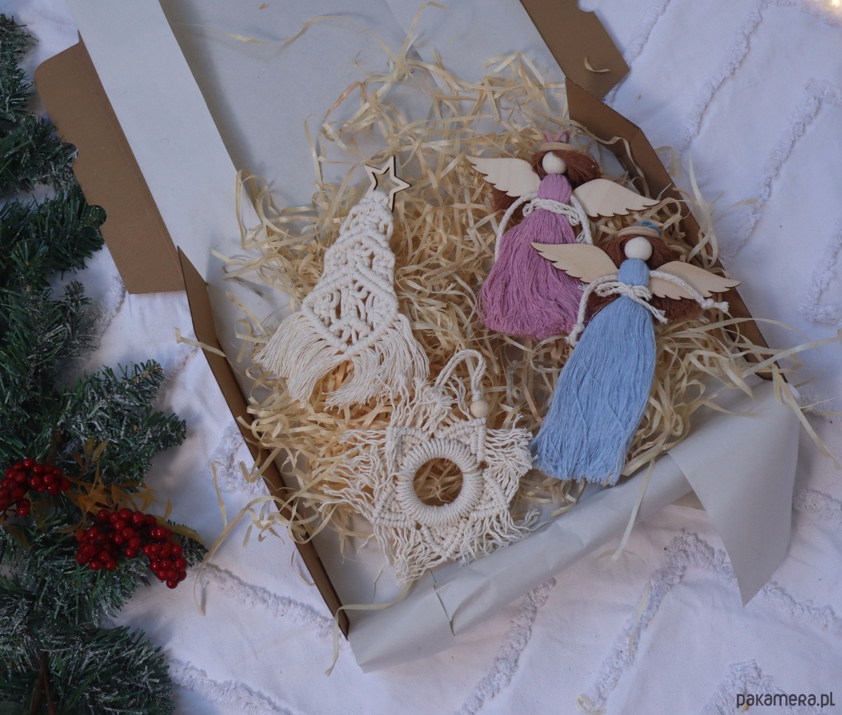 Zestaw ozdób choinkowych - makrama