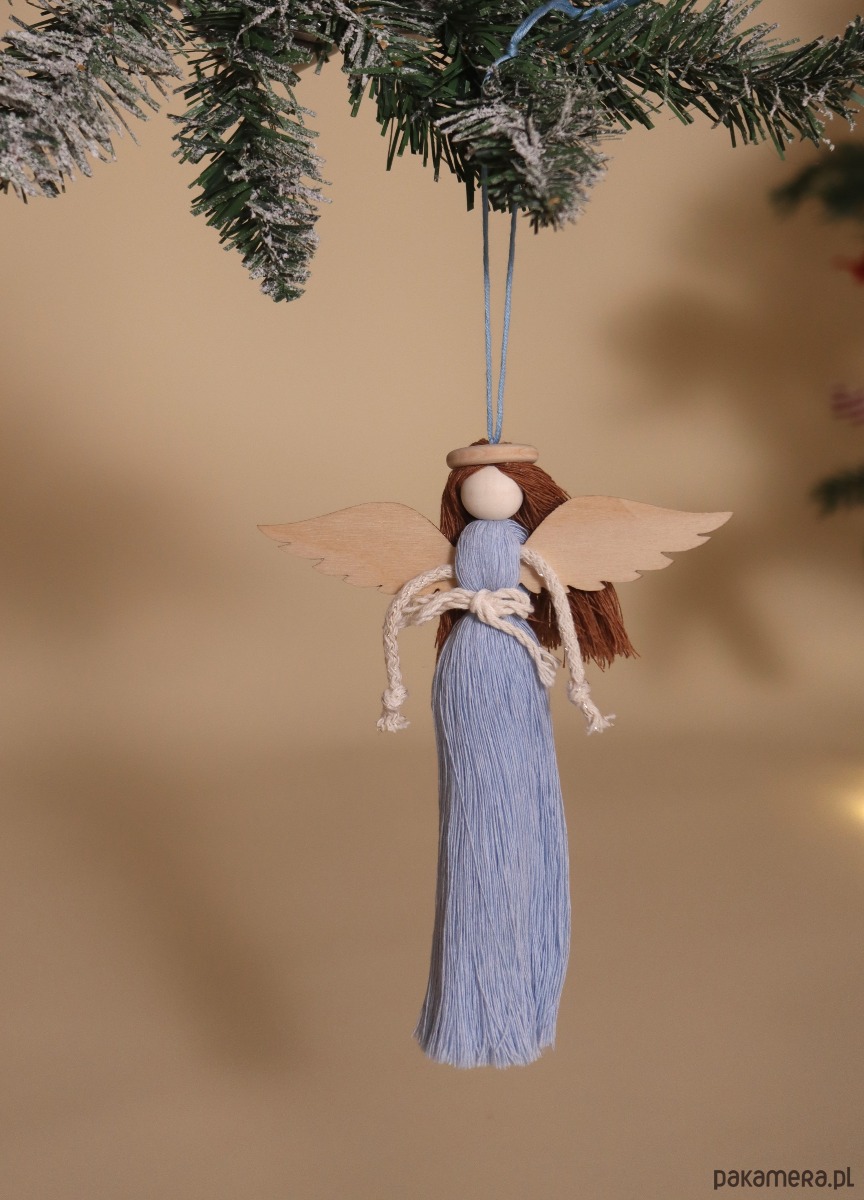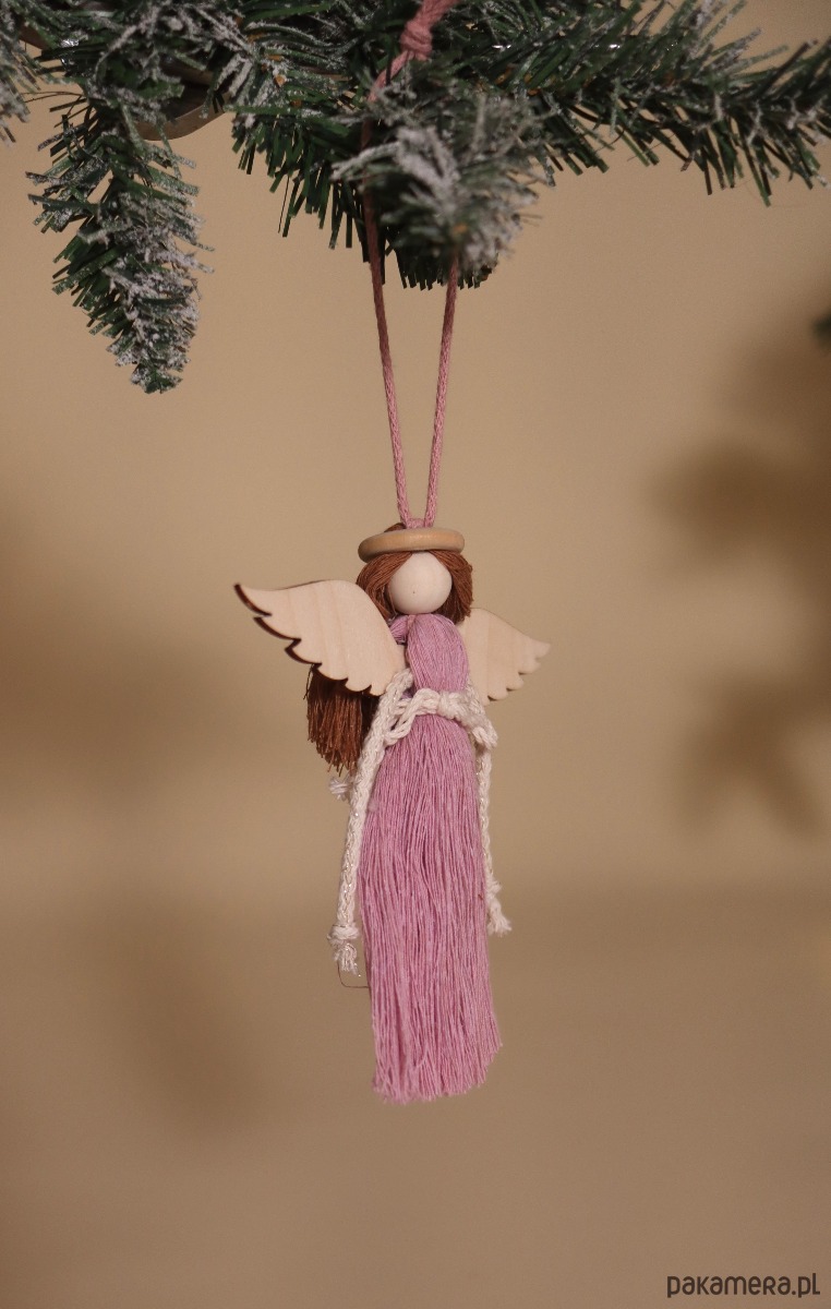 Zestaw zawiera dwa anioły (różowy i niebieski), gwiazdkę oraz choinkę.