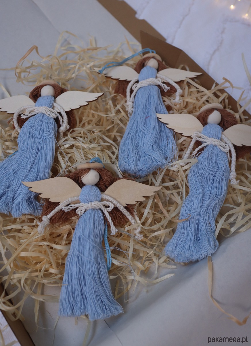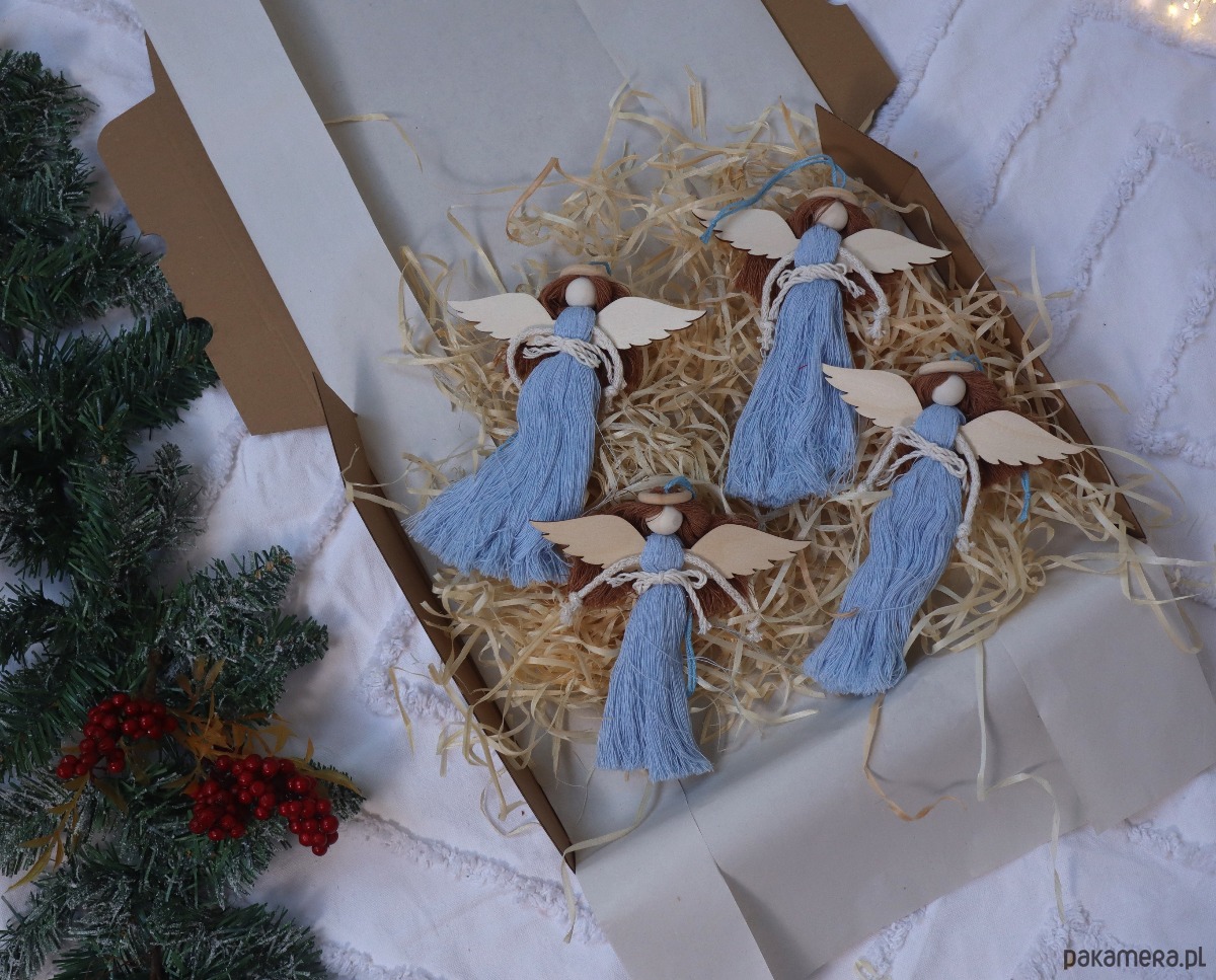 Zestaw 4ch ozdób świątecznych w formie makramowych aniołów