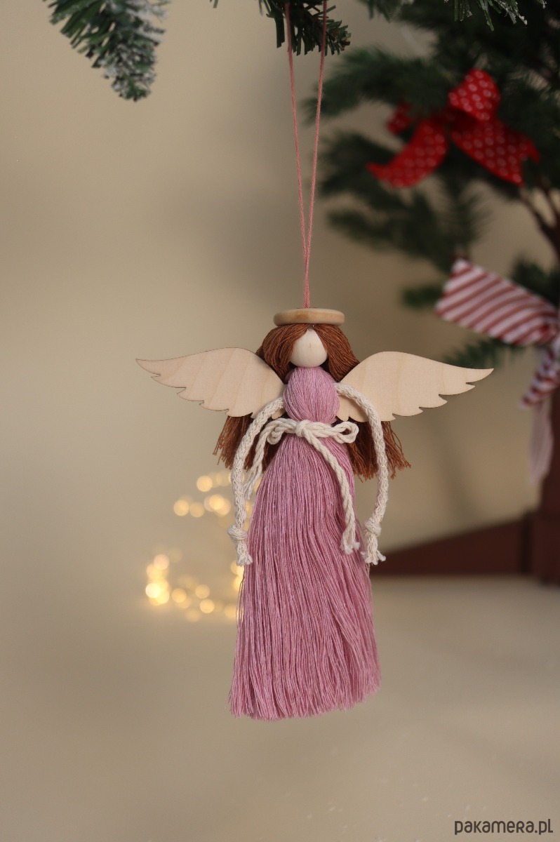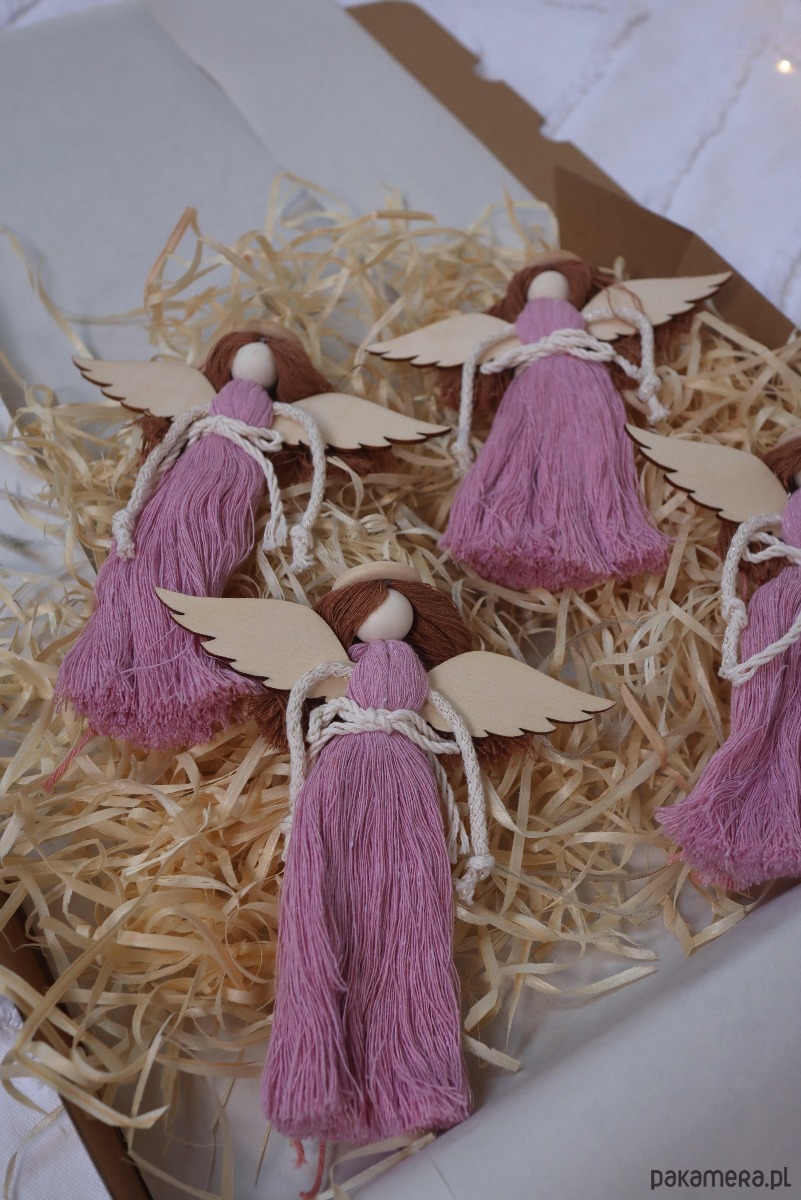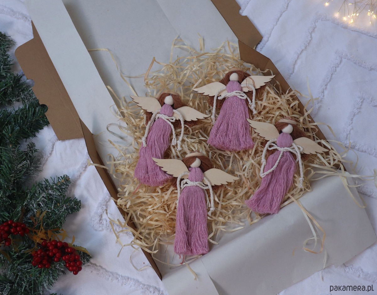 Zestaw 4ch ozdób świątecznych w formie makramowych aniołów