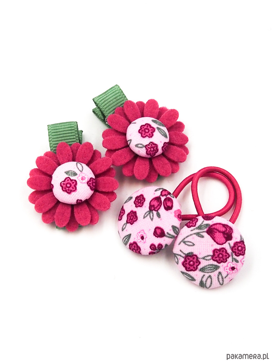 Spineczki do włosów z kwiatkami komplet 2 szt. i gumeczki do włosów.