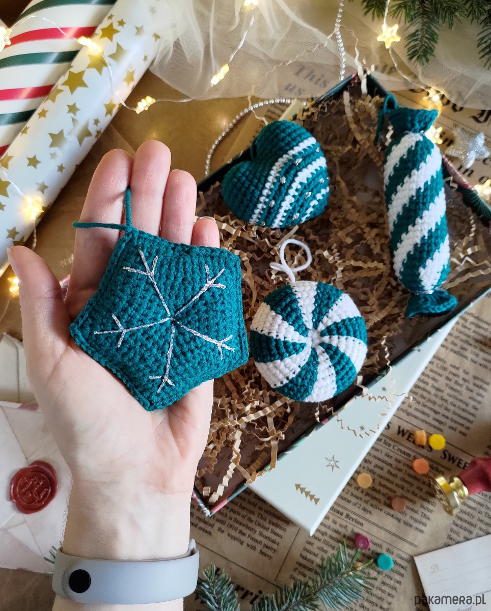 Zestaw świątecznych ozdob na choinkę wykonany na szydełku to doskonały i unikalny prezent na Święta Bożego Narodzenia dla całej rodziny czy przyjaciół.