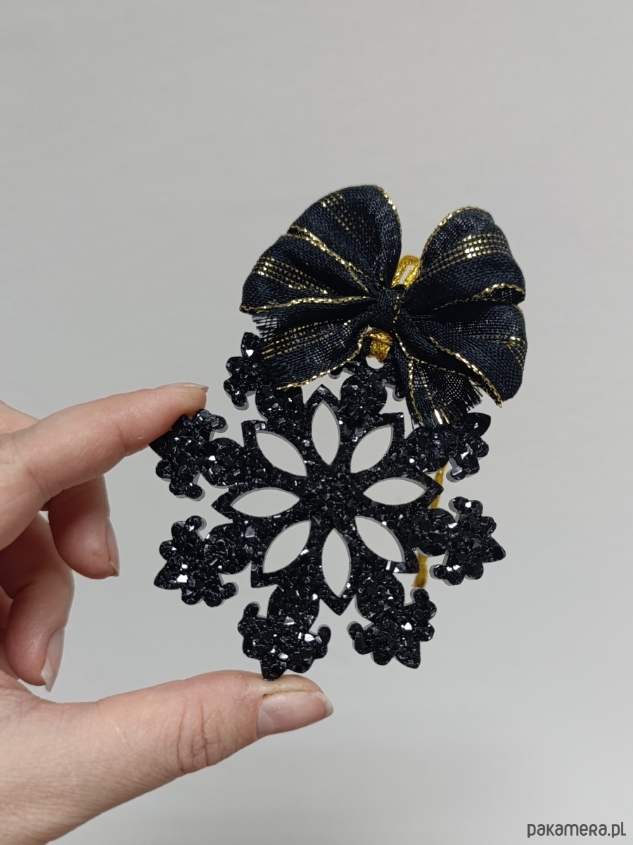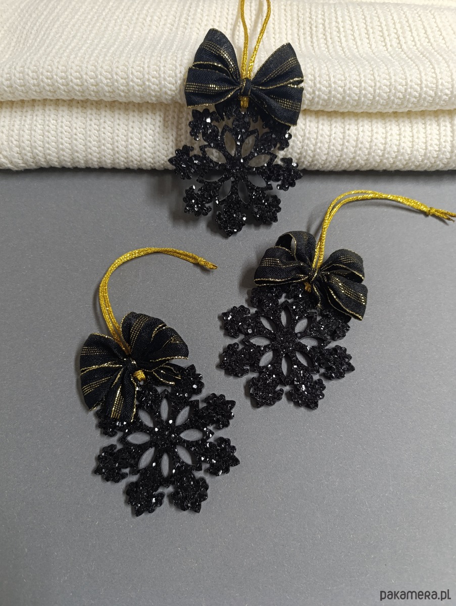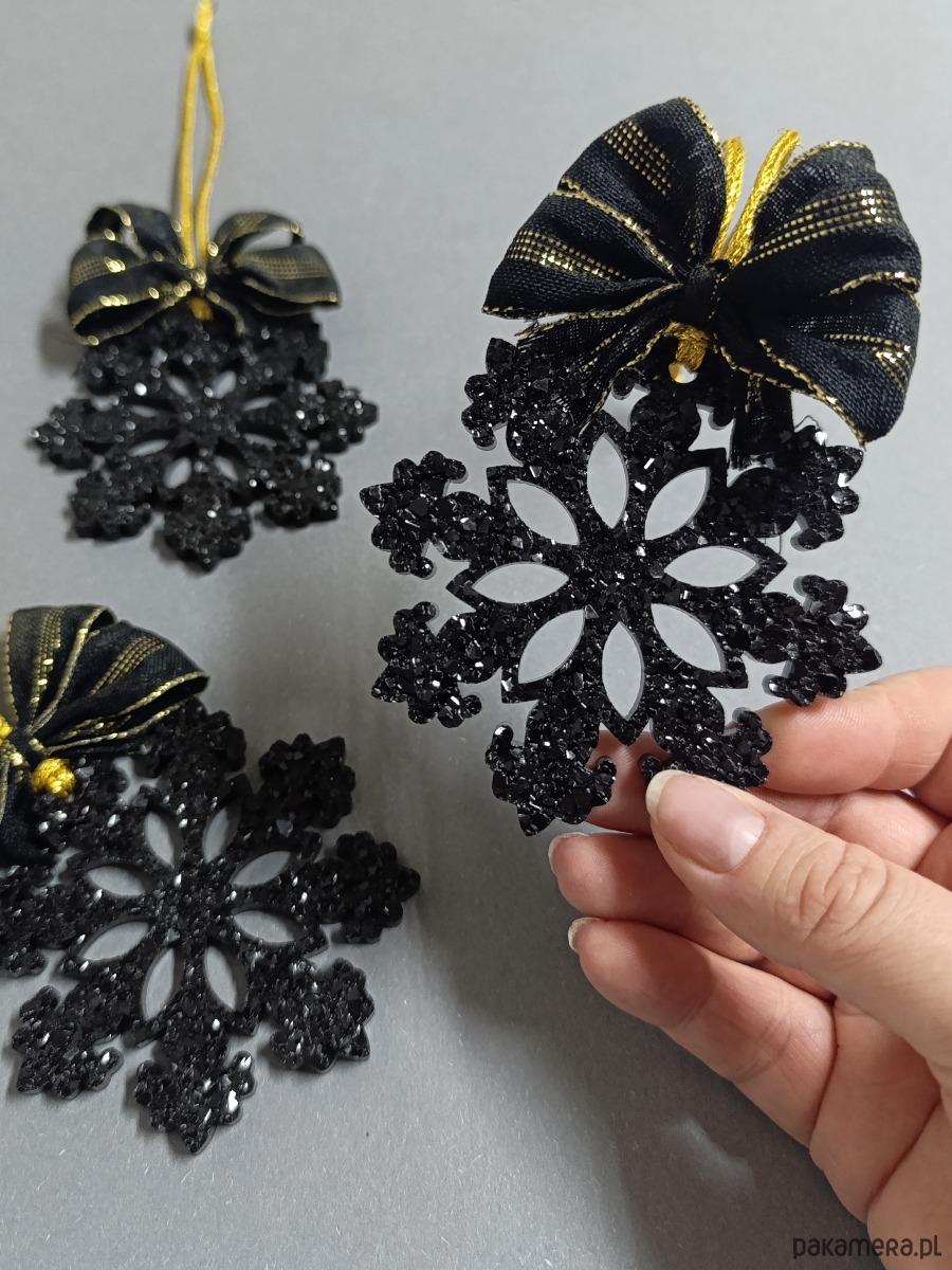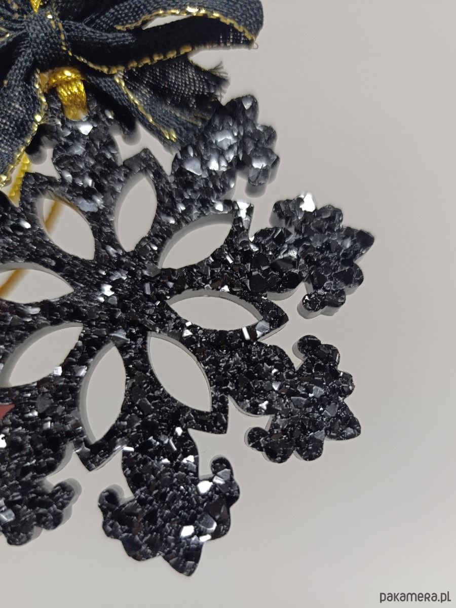 Wprowadź do swojego domu odrobinę magii dzięki unikalnym ozdobom w kształcie śnieżynek, wykonanym ręcznie z wysokiej jakości żywicy epoksydowej. Każda z nich zachwyca głęboką czernią, mieniącym się brokatem oraz subtelnymi złotymi akcentami – idealne połączenie klasyki i nowoczesności.