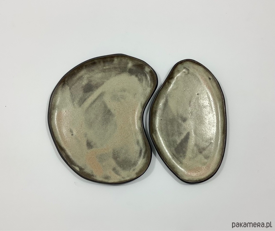 Zapraszam do zakupu talerzy / pater połączonych w jeden komplet. Każdy inny, ale razem tworzą fajną całość. Talerze wykonane ręcznie z czarnej gliny szamotowej, metodą formowania ręcznego. Szkliwione szkliwami dopuszczonymi do kontaktu z żywnością., obydwa w innym odcieniukremowym. Wypalone na 1240 stopni.