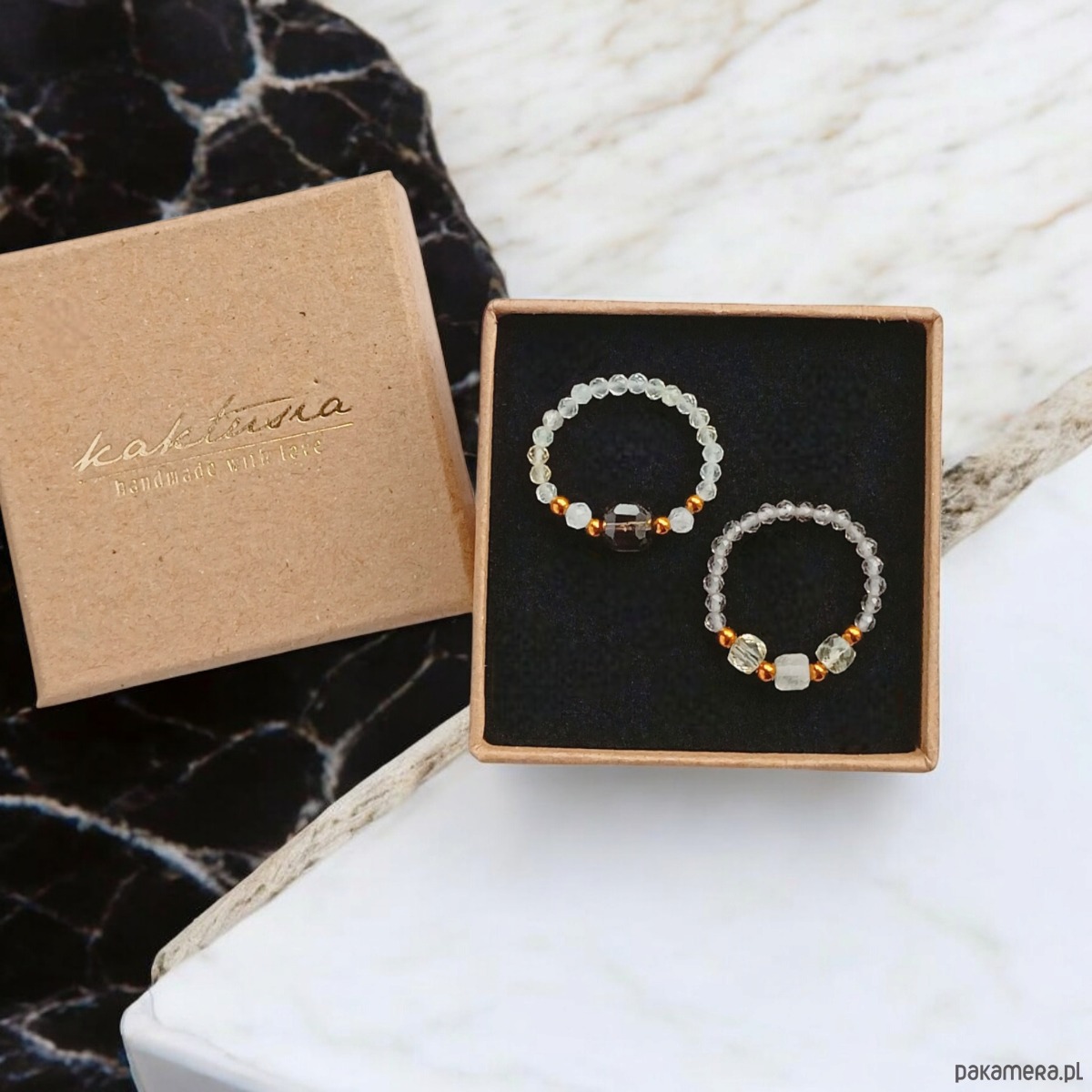 Zestaw 2 delikatnych pierścionków na solidnej gumce jubilerskiej.
