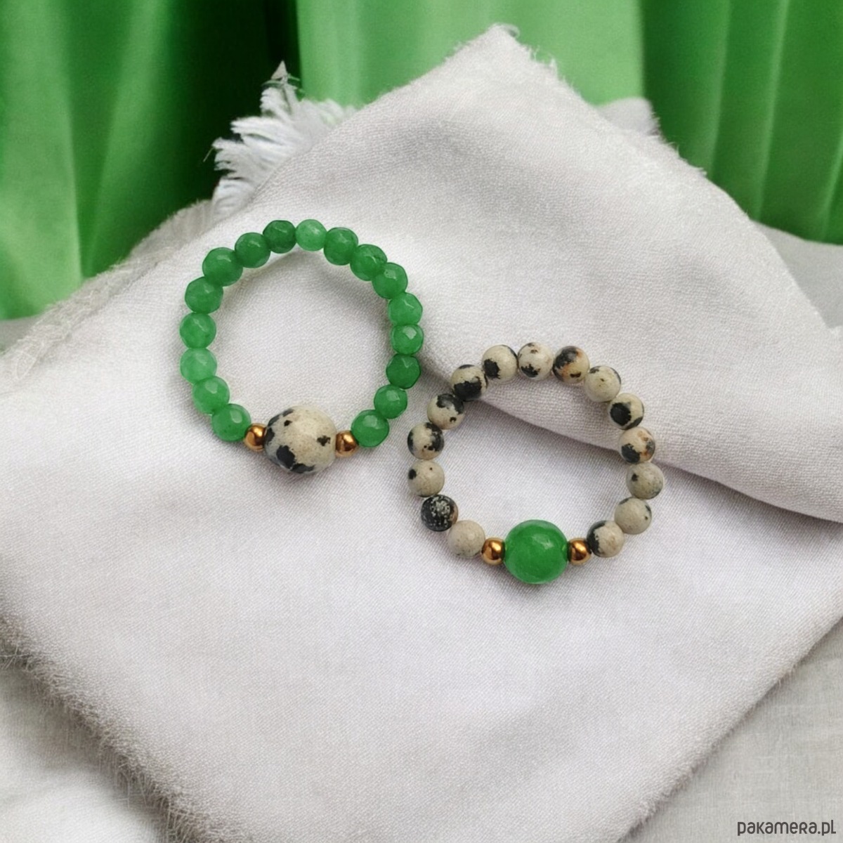 Zestaw pierścionków : jaspis dalmatyński, jadeit zielony