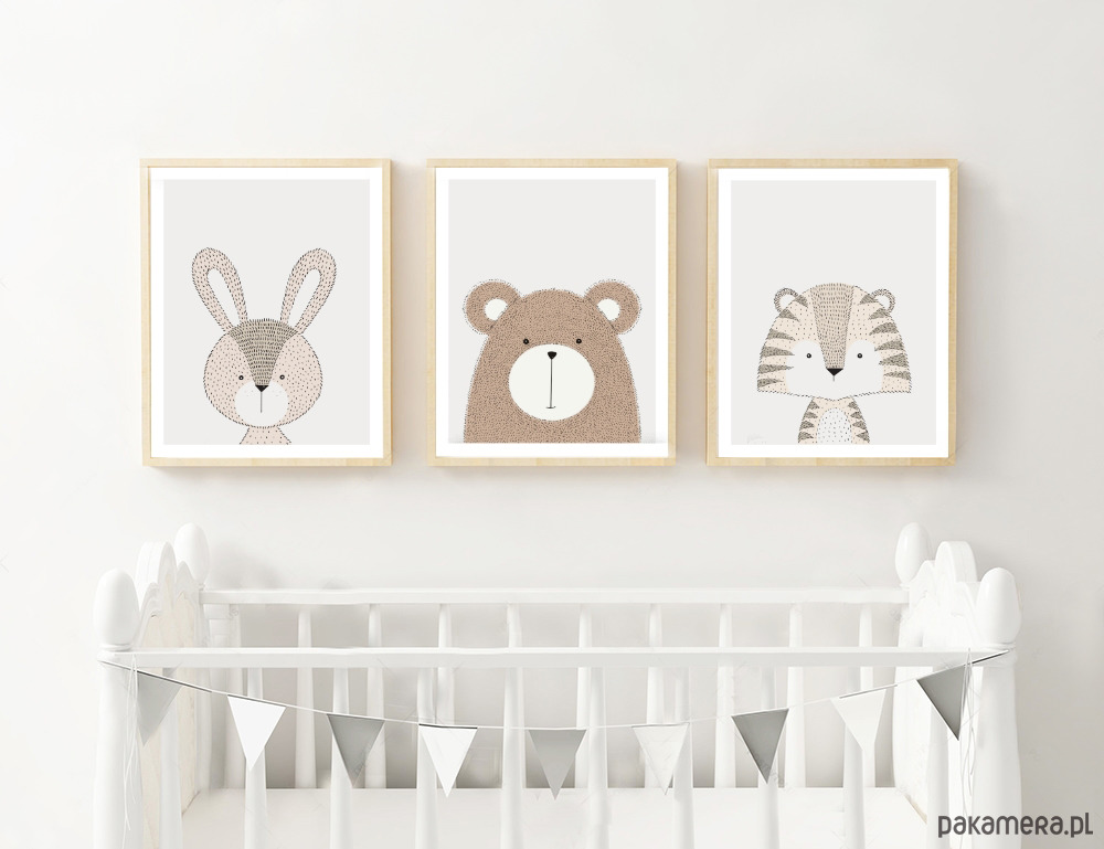 Zestaw 3 plakatów z grafiką w stylu skandynawskim sprawi, że Twoje wnętrze będzie oryginalne i bardziej przytulne dla małego Skarba.