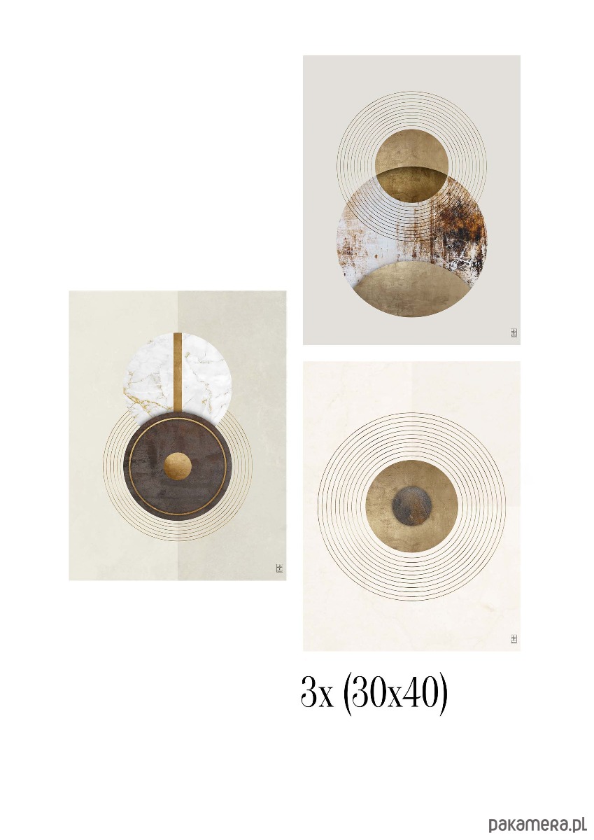 Elegancki zestaw 3 plakatów w rozmiarze 30x40 cm, utrzymany w stonowanej, naturalnej kolorystyce beżu, écru, brązu i subtelnych złotych akcentów. Kompozycje inspirowane są geometrią, harmonią form oraz minimalistyczną sztuką abstrakcyjną, dzięki czemu doskonale wpisują się w nowoczesne, japandi, skandynawskie i klasyczne wnętrza.