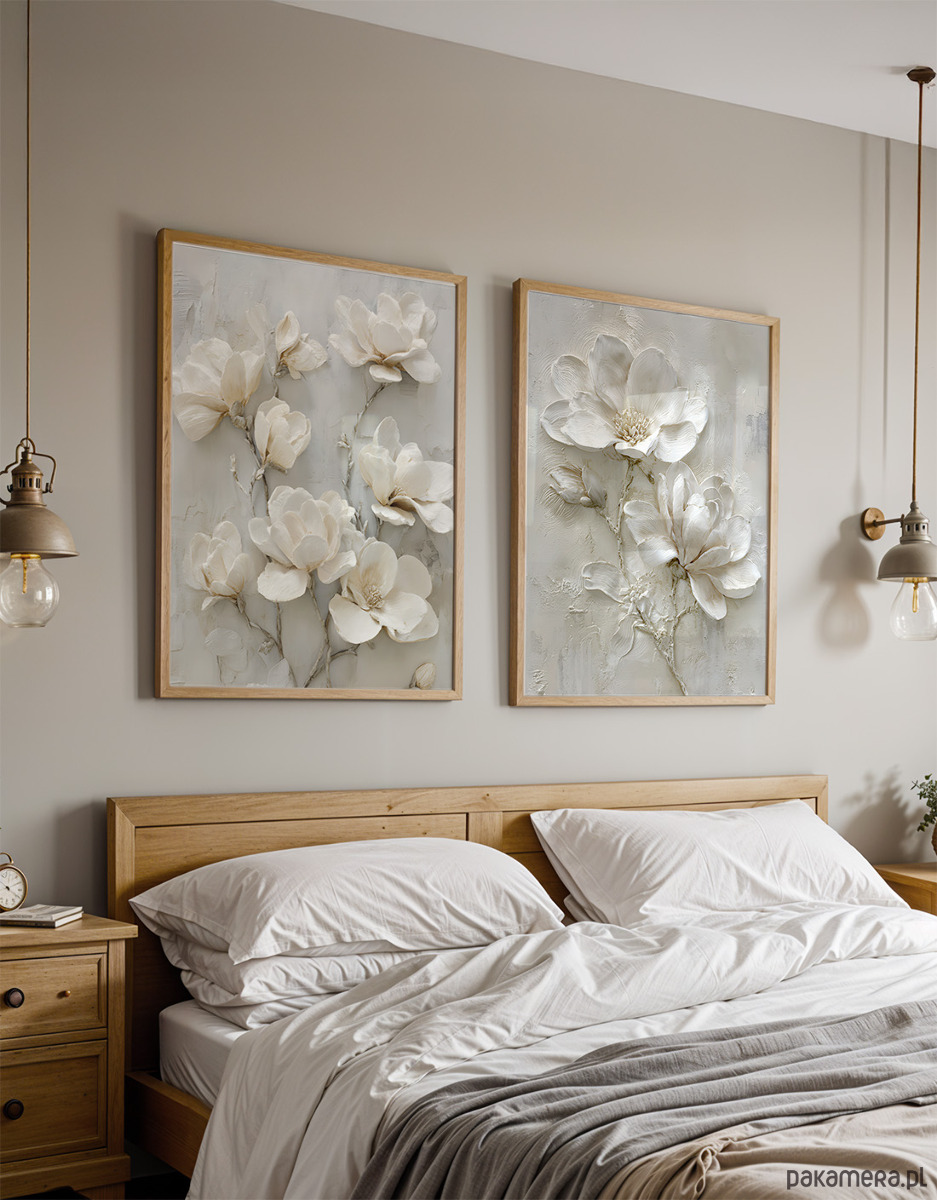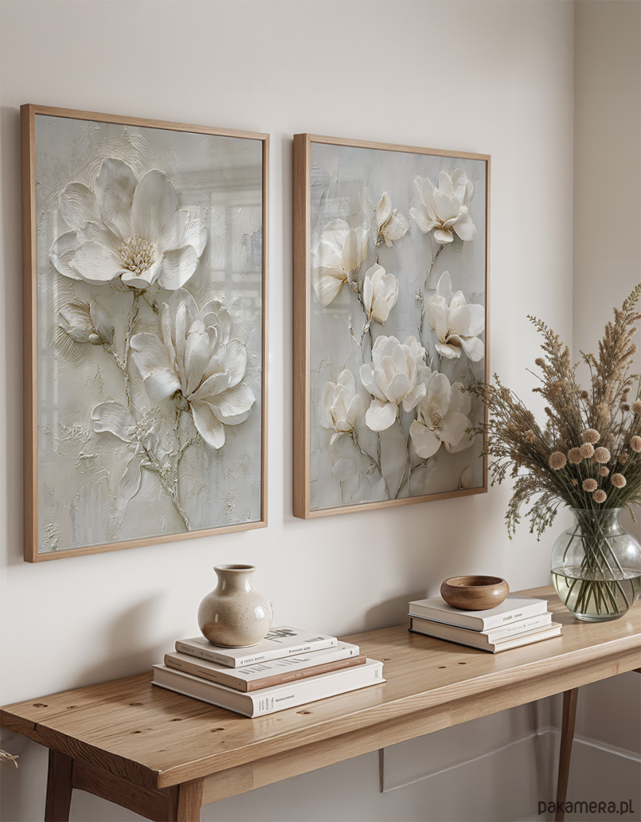 Zestaw dwóch plakatów, które wprowadzą do wnętrza elegancję. Te obrazy doskonale się uzupełniają, tworząc spójną, naturalną galerię ścienną.