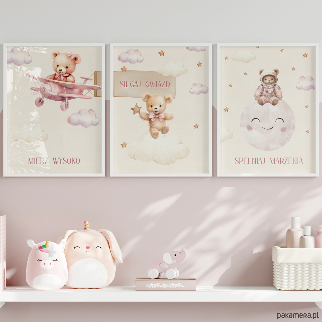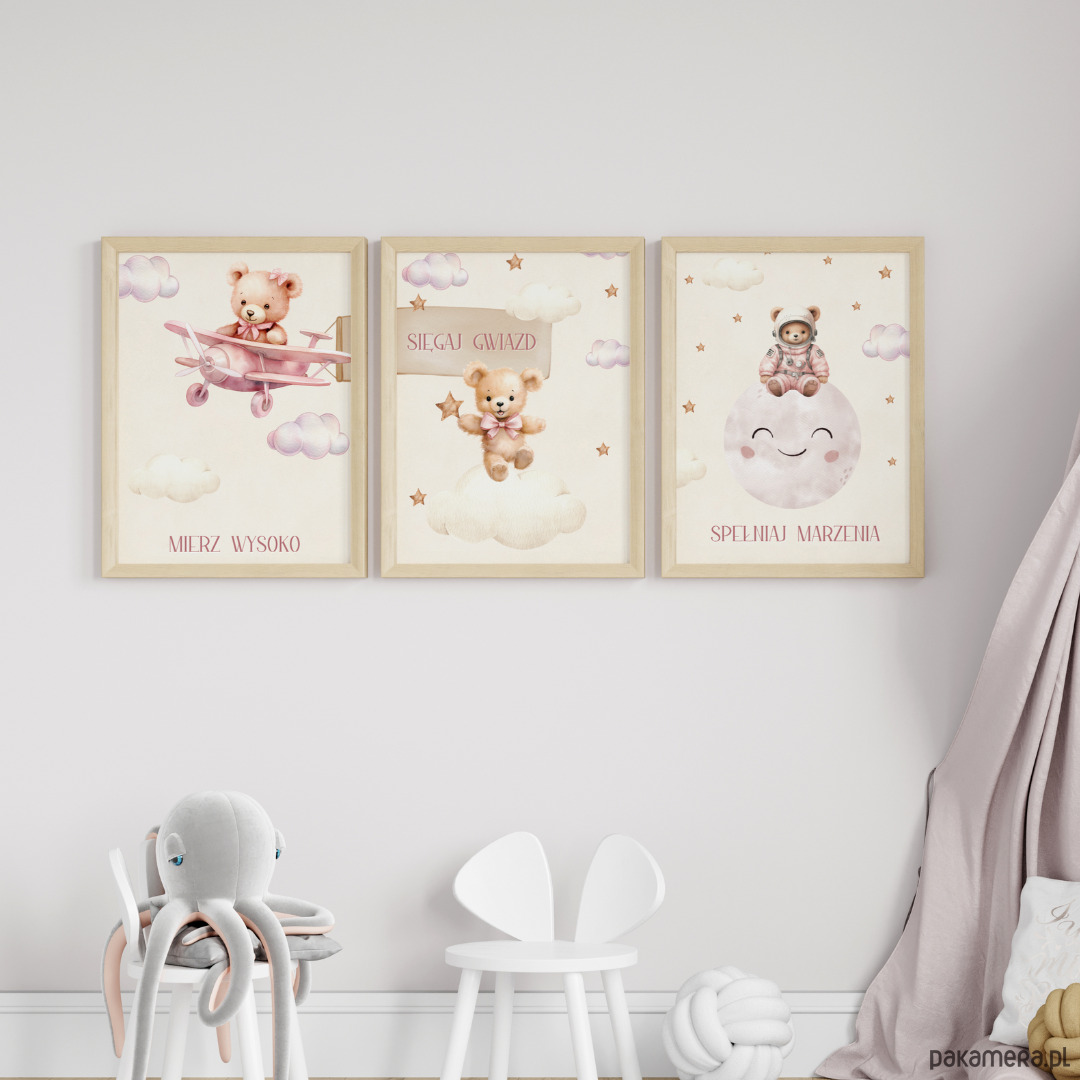 Prezentujemy Państwu zestaw 3 uroczych plakatów motywacyjnych do pokoju dziecka.