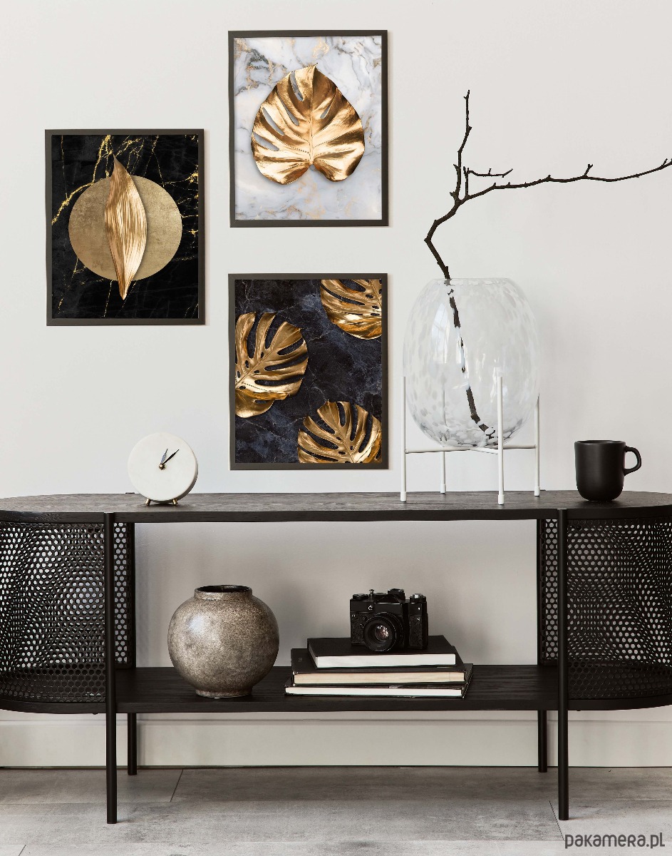 Odkryj luksus i elegancję dzięki naszemu wyjątkowemu zestawowi plakatów, które wzbogacą każde wnętrze. Plakaty prezentują błyszczące, złote liście monstery na tle majestatycznego marmuru – białego z delikatnymi żyłkami oraz głębokiego czarnego ze złotymi inkrustacjami. To idealne połączenie naturalnych motywów z nowoczesnym, glamour akcentem.
