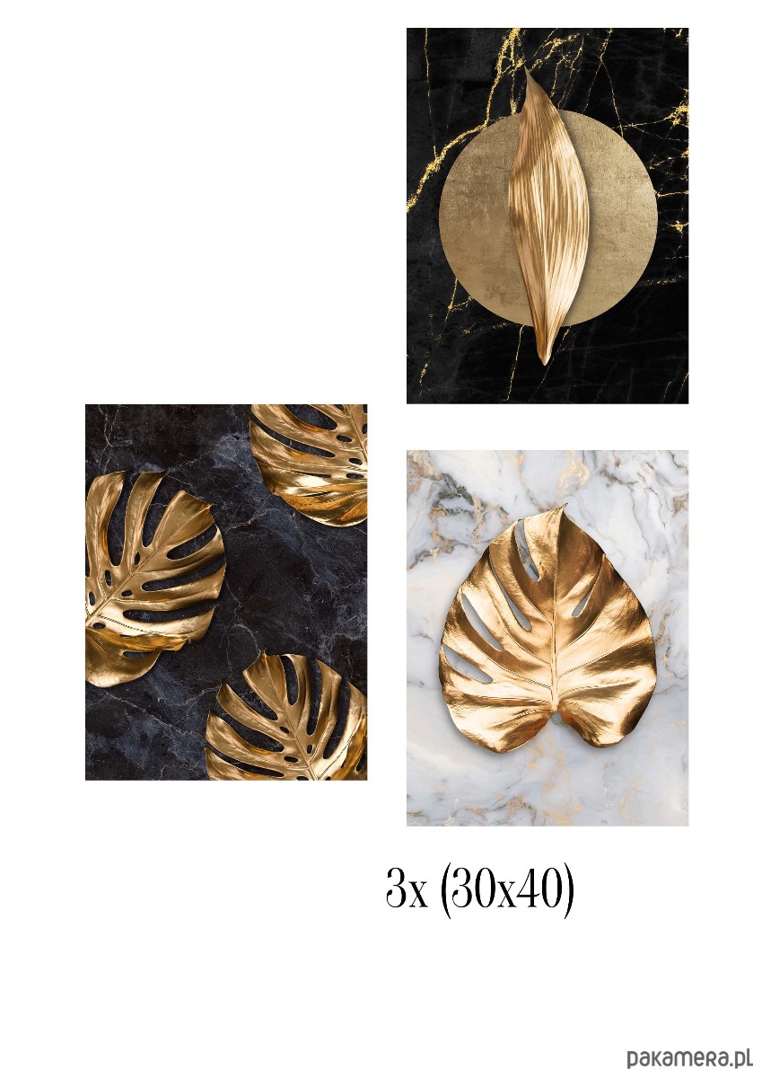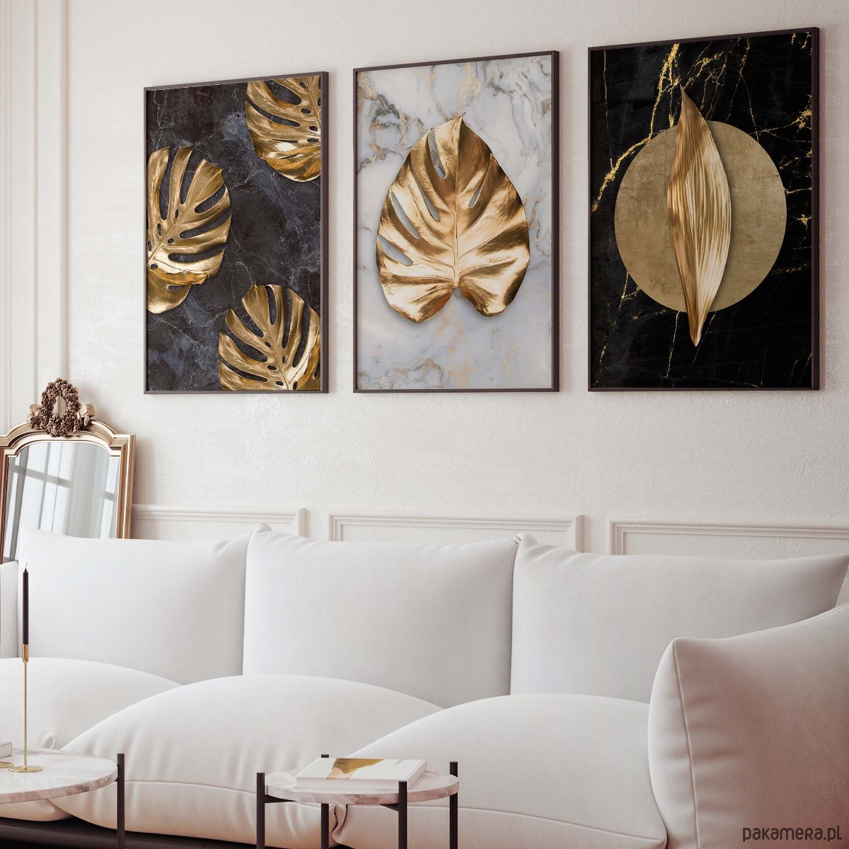 Zestaw Plakatów Złote Liście Monstera Marmur