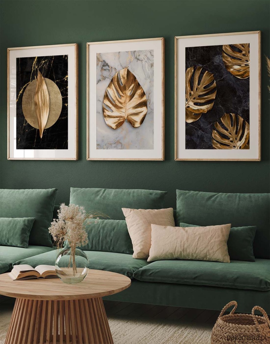 Zestaw jest sprzedawany jako komplet trzech plakatów, które razem tworzą spójną i kompletną aranżację. To idealne rozwiązanie dla osób pragnących szybko i z łatwością udekorować swoje wnętrza w eleganckim, współczesnym stylu, bez obawy o dopasowywanie pojedynczych elementów.