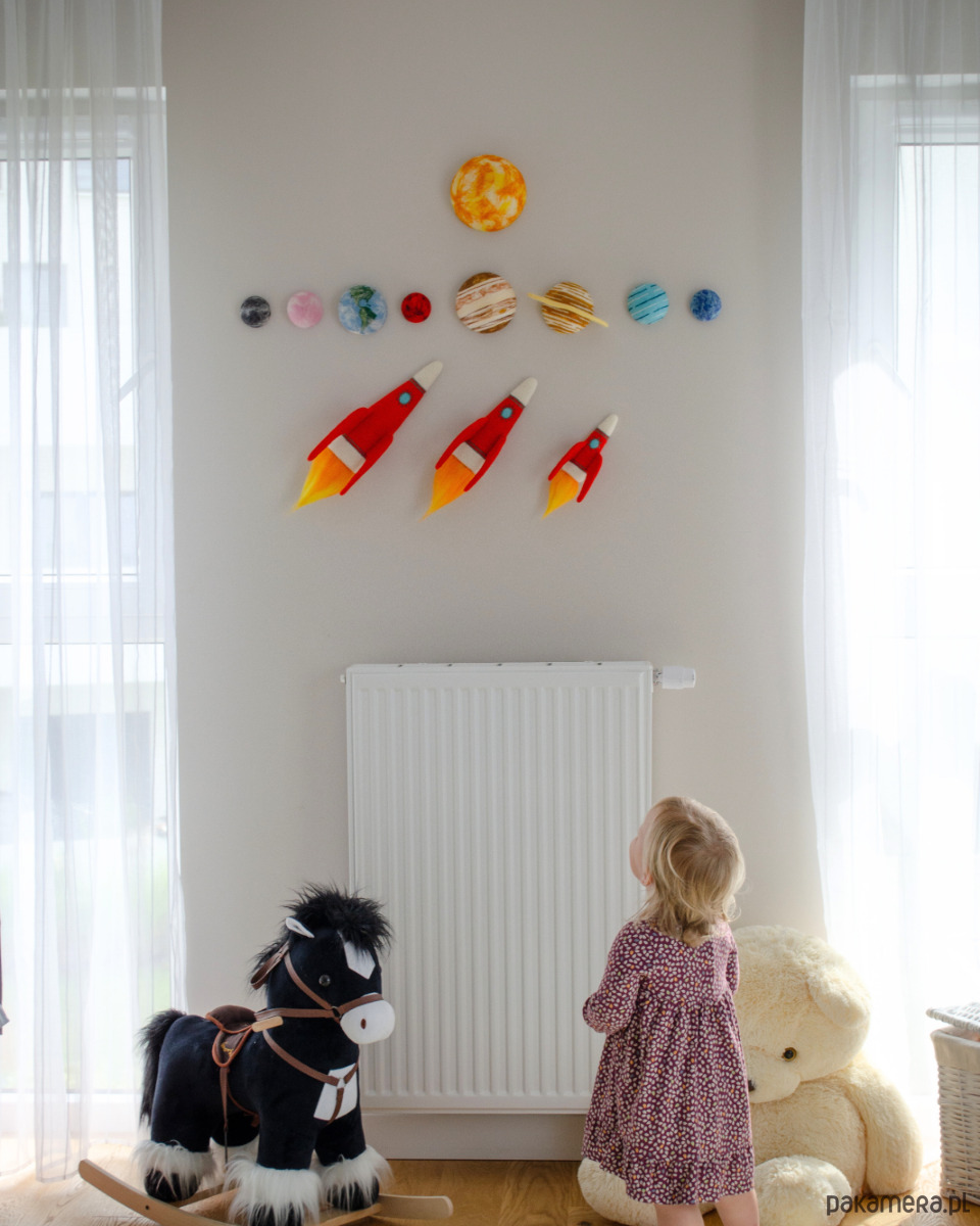 Zestaw filcowych planet i słońca to niebanalna dekoracja, która odmieni każde wnętrze. Kontrastowe kolory i proste formy przyciągają uwagę najmłodszych, a starszym dzieciom pomagają odkrywać fascynujący świat kosmosu.