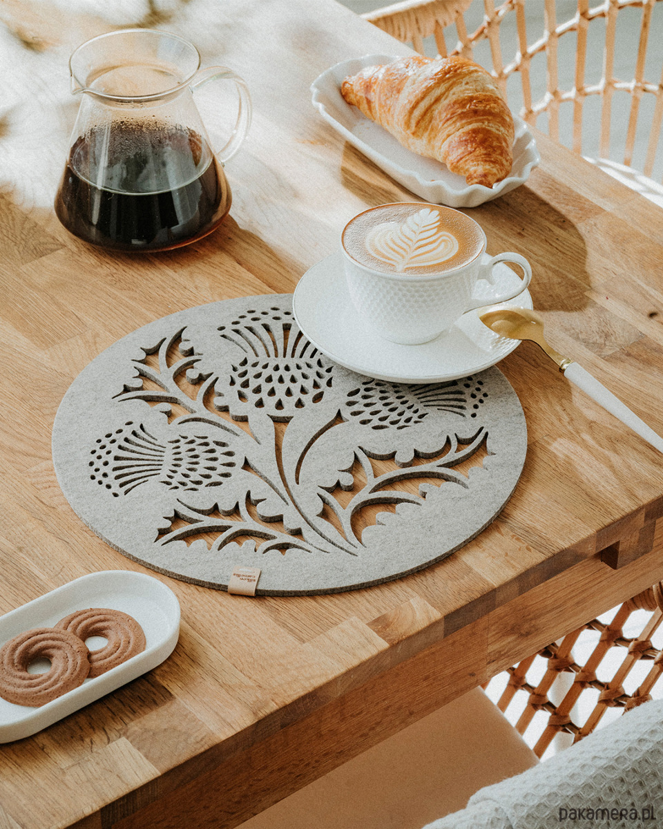 Zestaw podkładek pod talerze wykonanych z wytrzymałego i certyfikowanego filcu o wysokiej gęstości. Wykorzystywany przez nas filc jest odporny na ścieranie, trudnopalny, przyjezdny dla środowiska, bezpieczny dla zdrowia człowieka, a jego kolory są odporne na działanie światła. :)