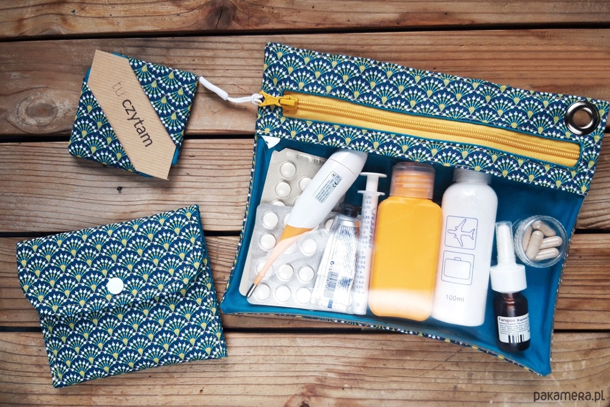 Zestaw podróżny składający się z saszetki podróżnej, etui na podpaski/maseczki oraz 2 zakładki do książek.