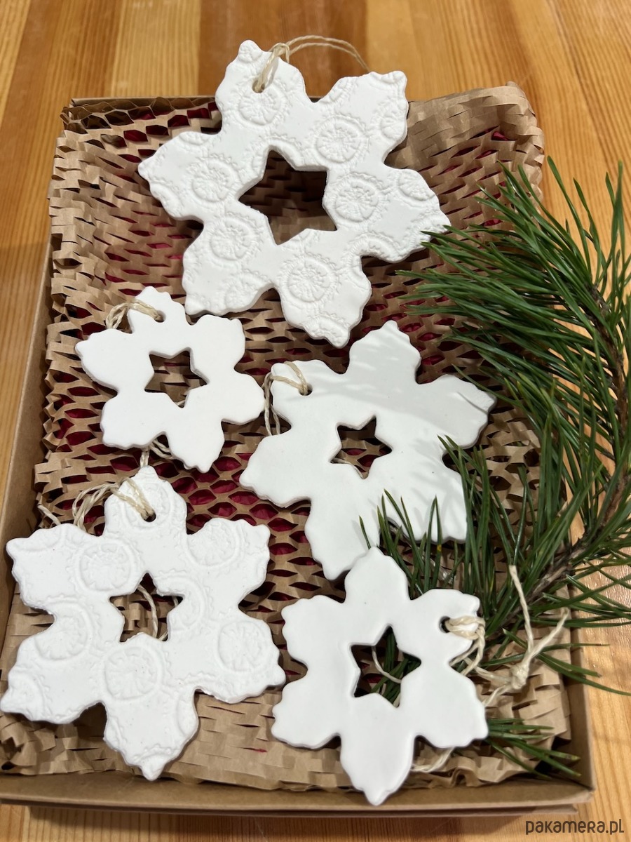 Porcelanowe gwiazdki na choinkę - 5 sztuk w zestawie.