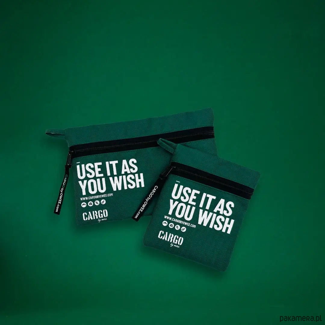 Saszetka Medium GREEN - materiałowa, zapinana na suwak, większa wersja do przechowywania drobiazgów. Również może służyć jako futerał na elektronikę lub podróżna kosmetyczka.