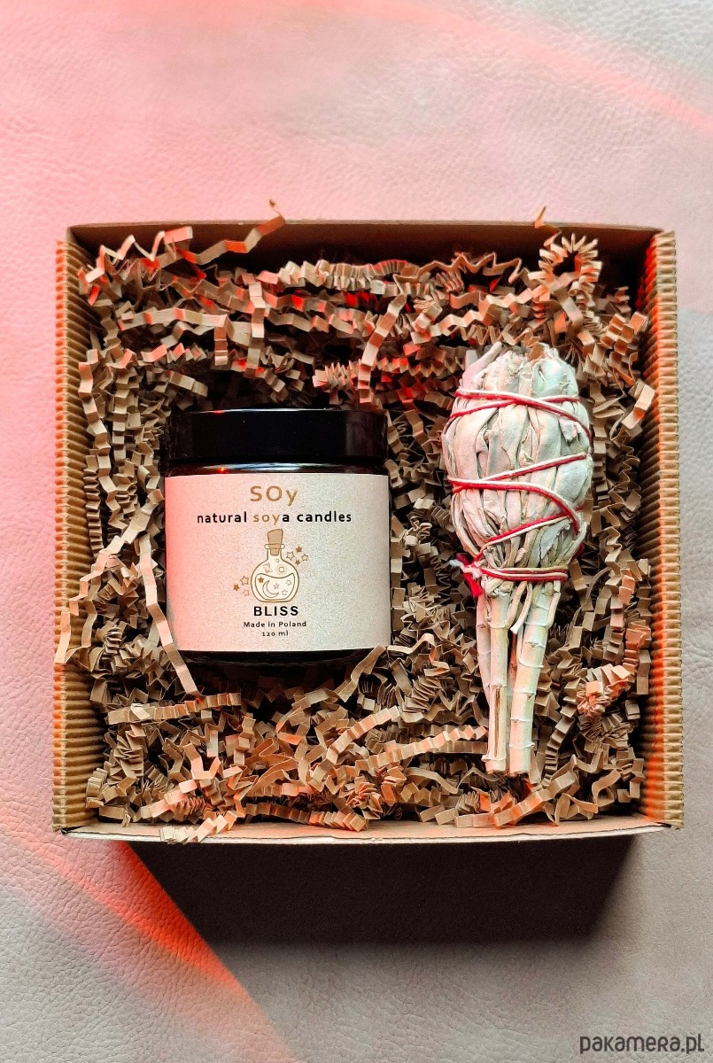 Zestaw prezentowy ze świecą sojową i kadzidłem biała szałwia
