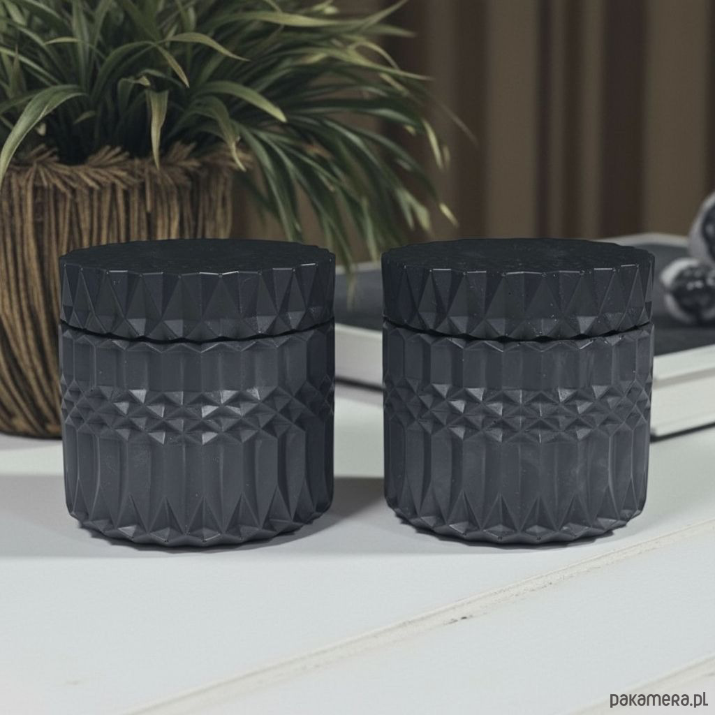 Zestaw obejmuje dwie świece w naczyniu gipsowym.