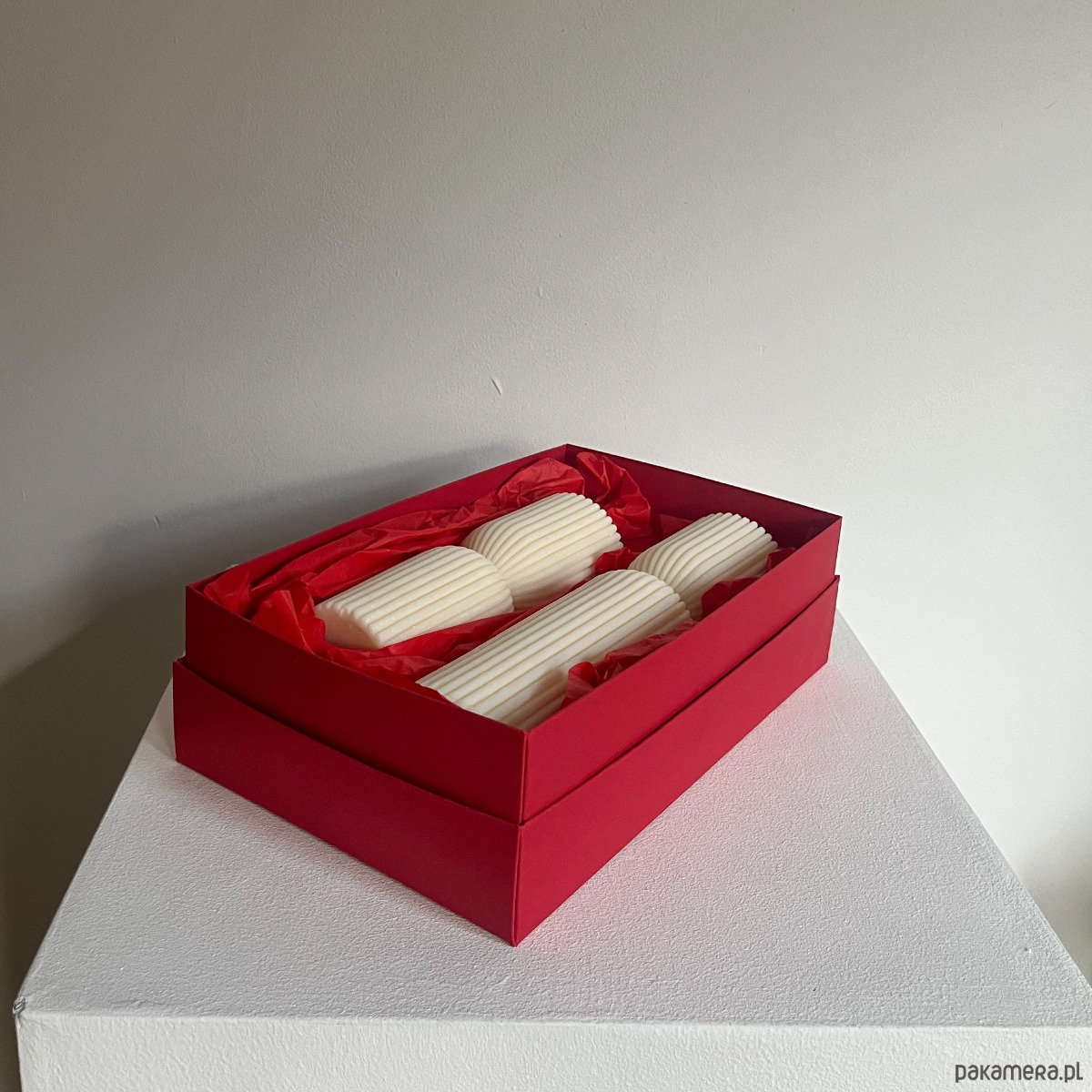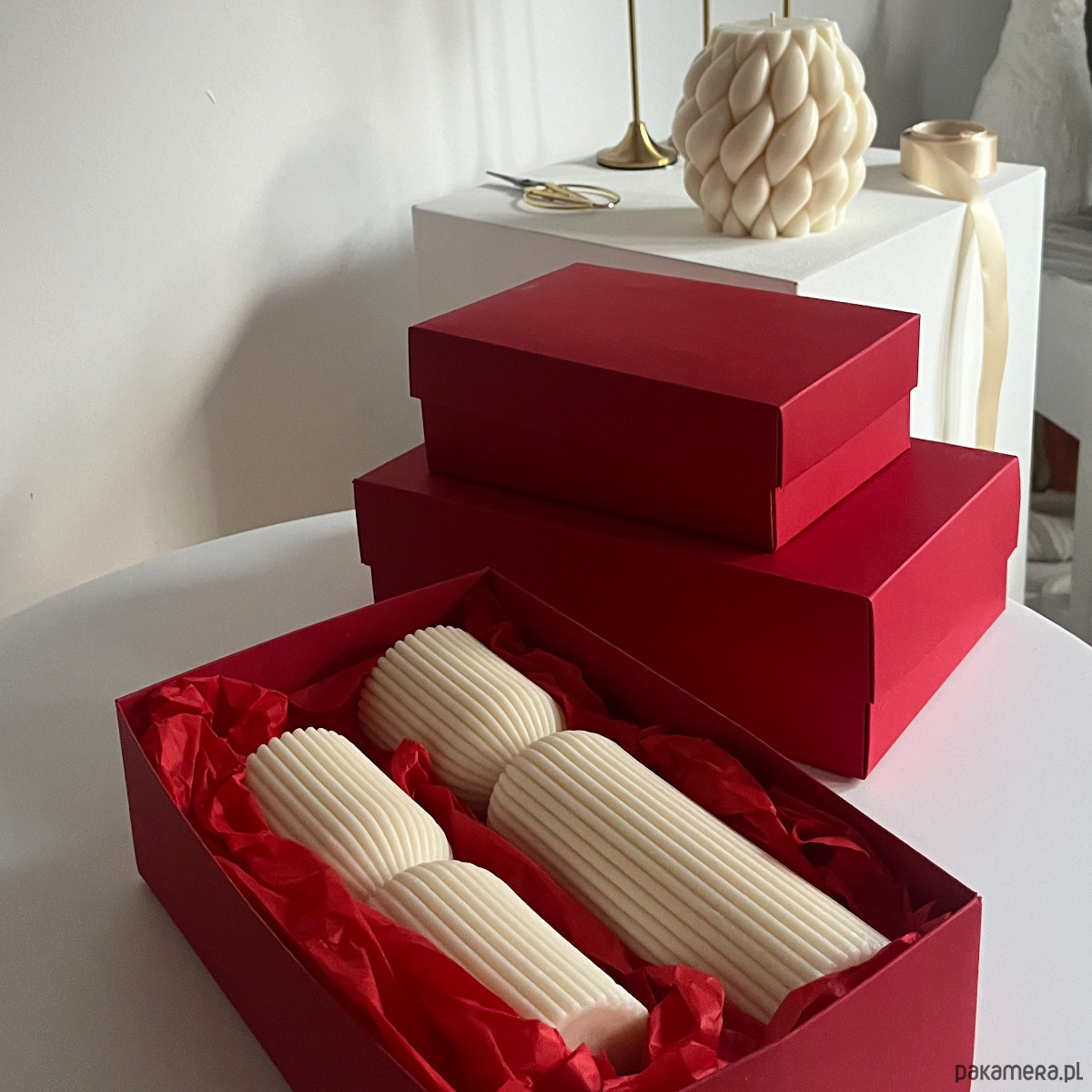 Zestaw świąteczny dla Twoich bliskich! Piękne czerwone pudełko przewiązane kremowo-złotą wstążką, wypełnione czerwonym papierem. W zestawie znajdują się dwie świece dekoracyjne – Norah & Noah, które będą idealnym prezentem dla każdej kobiety! 🎁