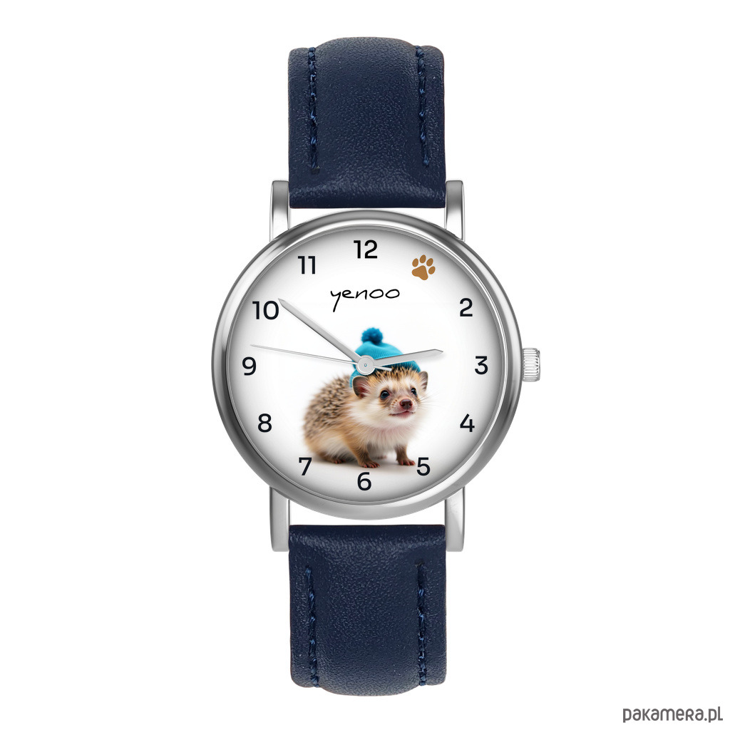 Zestaw prezentowy - Jeżyk - zegarek i brelok - skórzany, granatowy