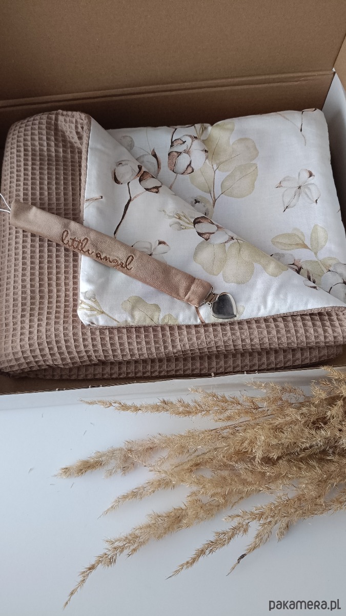 Gotowy zestaw prezentowy kocyk 75x60cm + poduszka + zawieszka